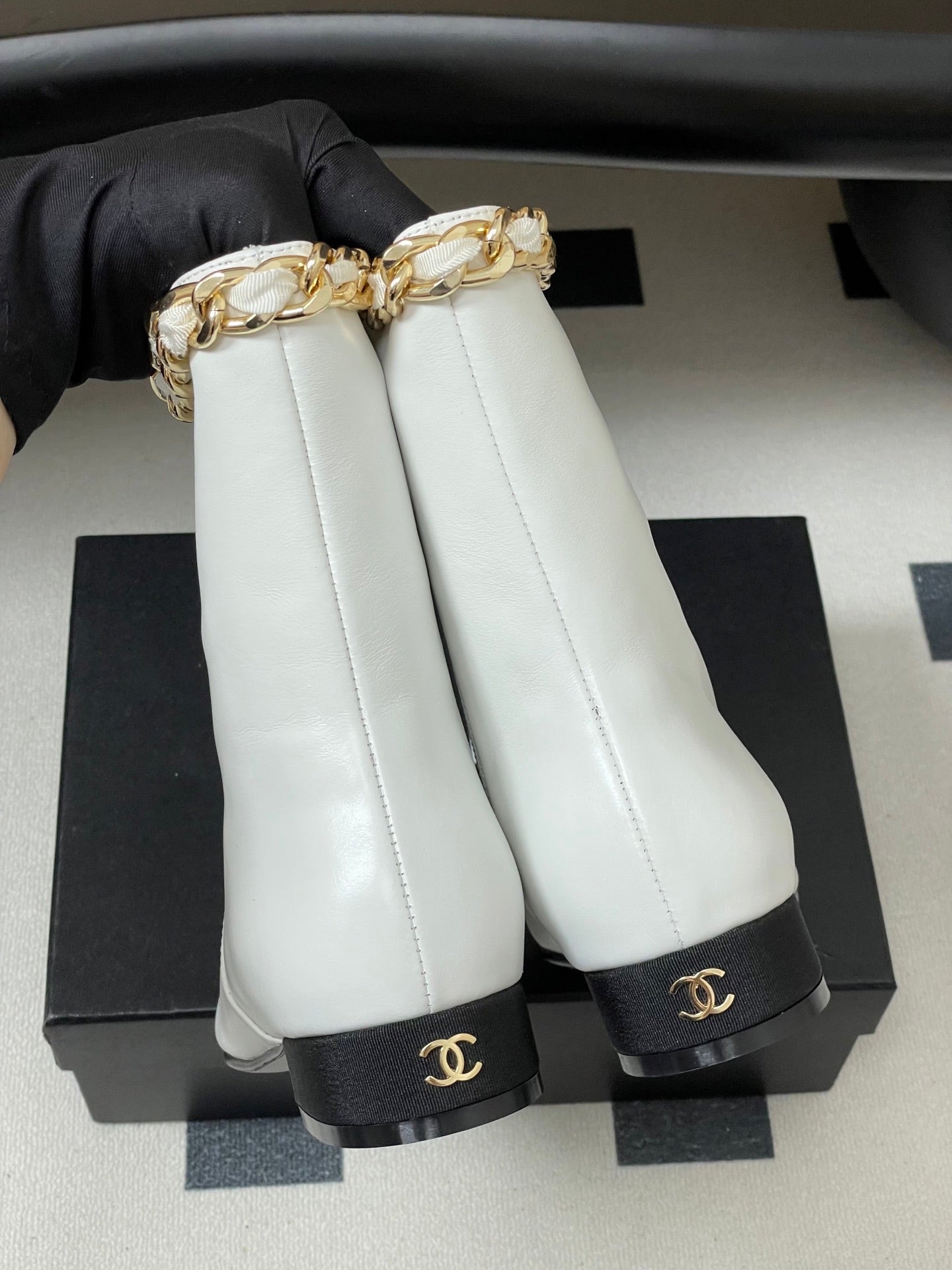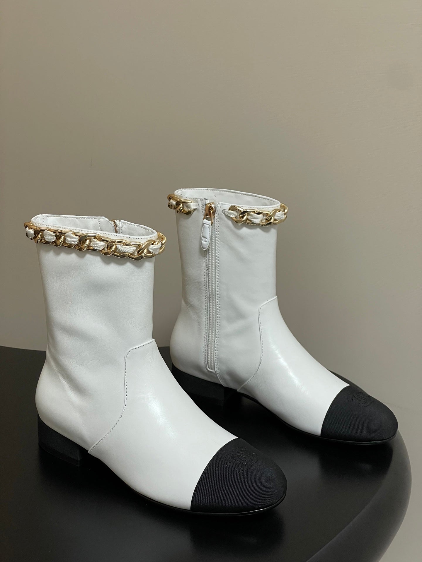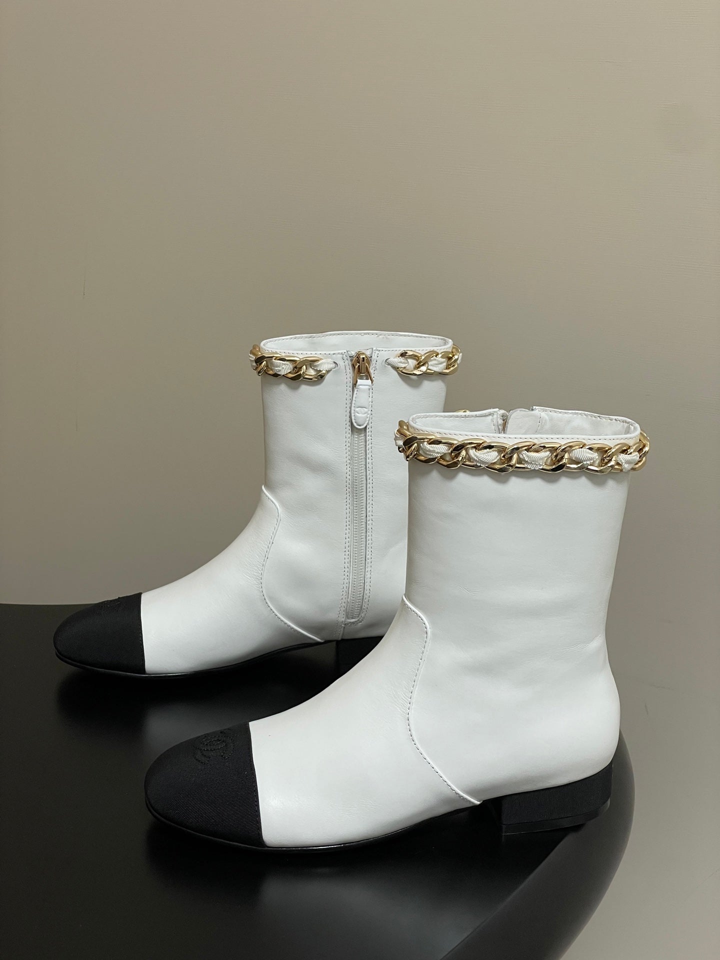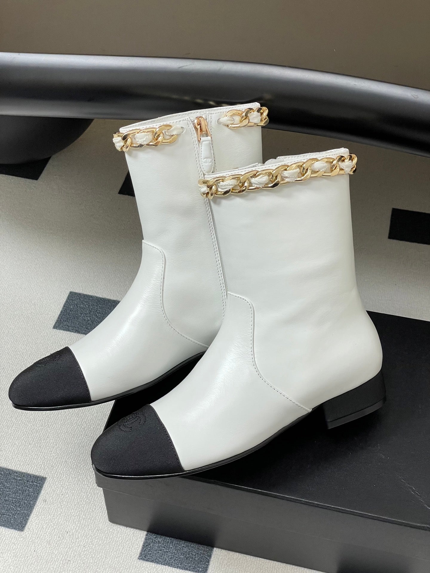 CC 25B Chain Short Boot 25mm Black White Denim Cowhide 423153