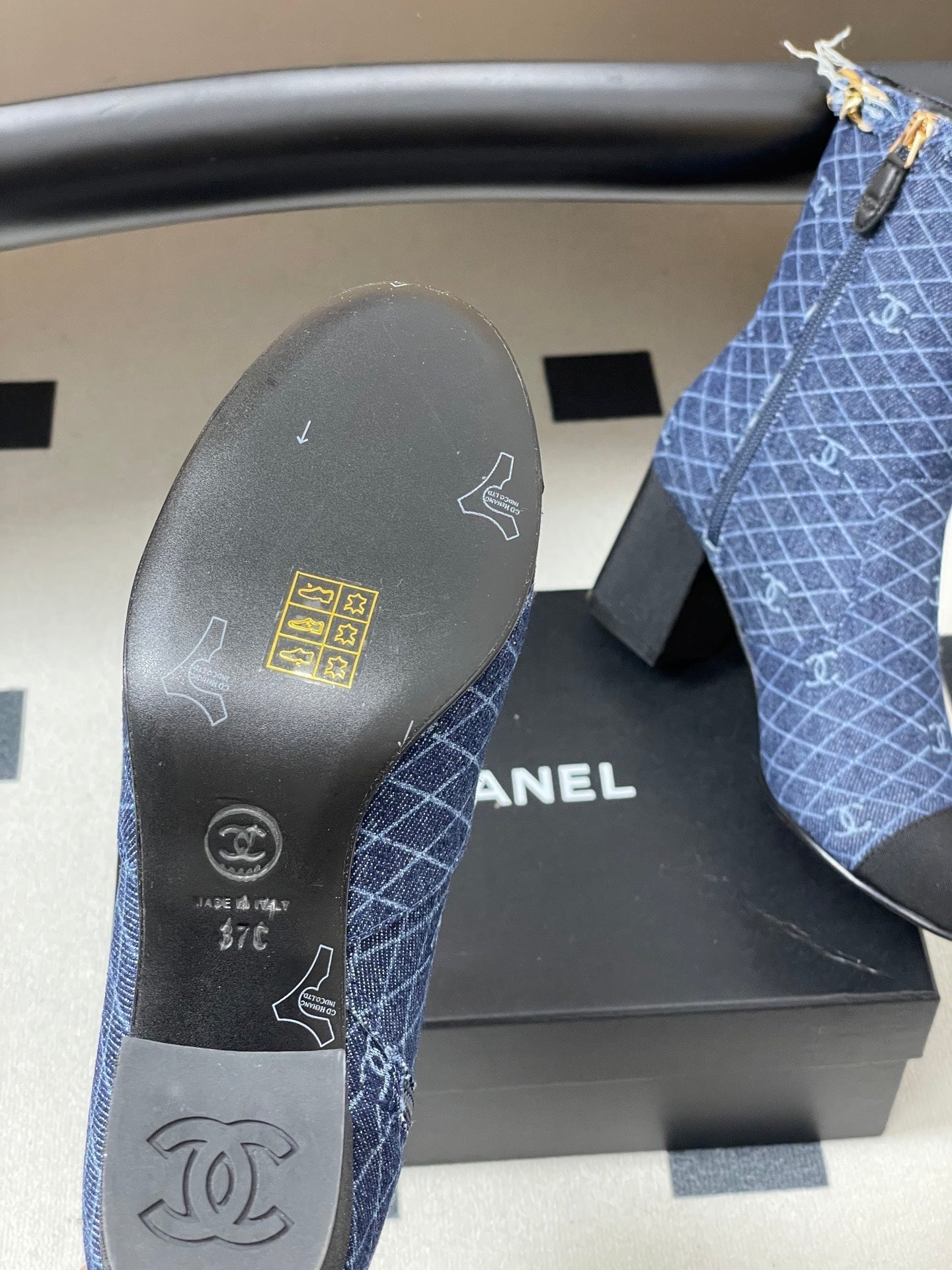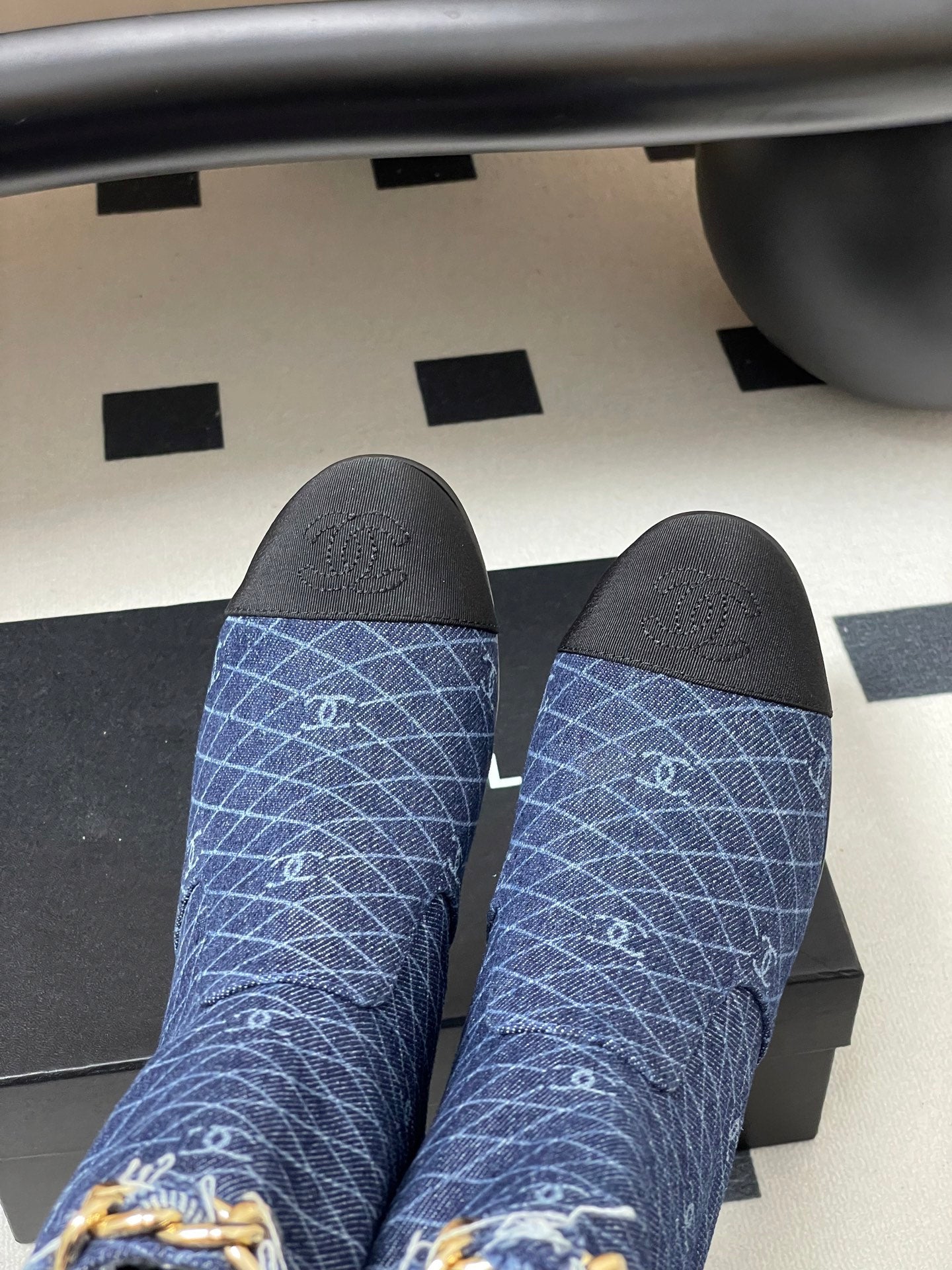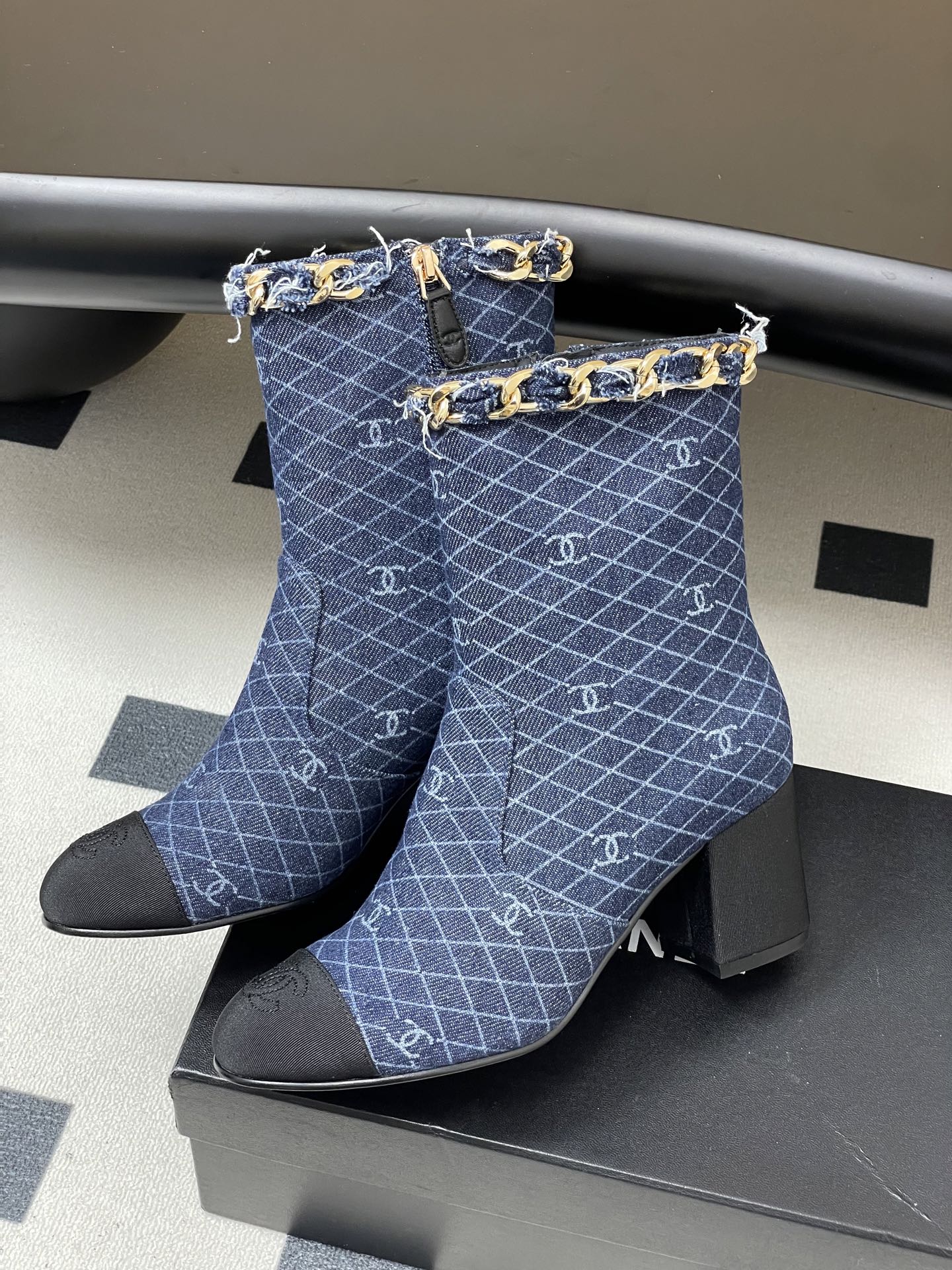 CC 25B Chain Short Boot 70mm Black Blue Denim 423145
