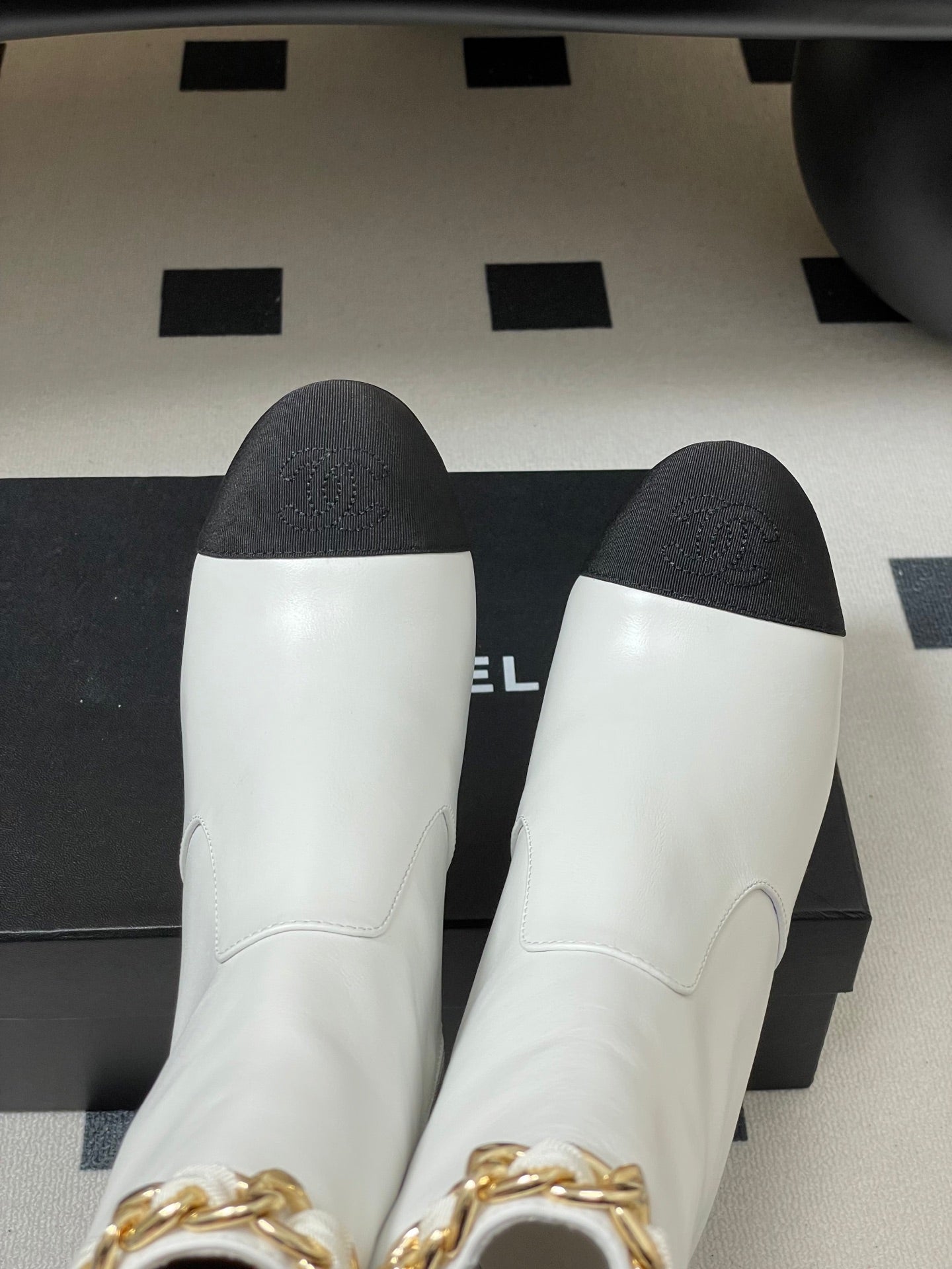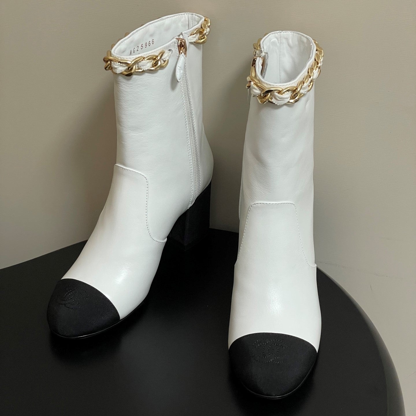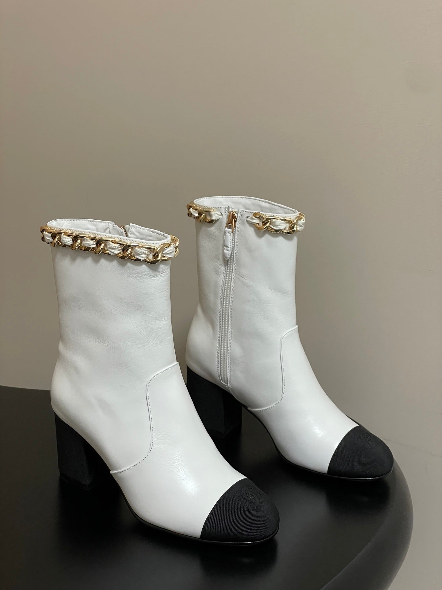 CC 25B Chain Short Boot 70mm Black White Denim Cowhide 423148