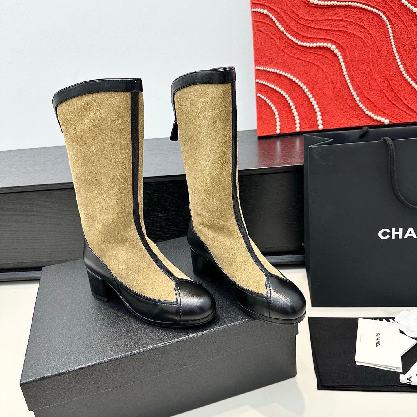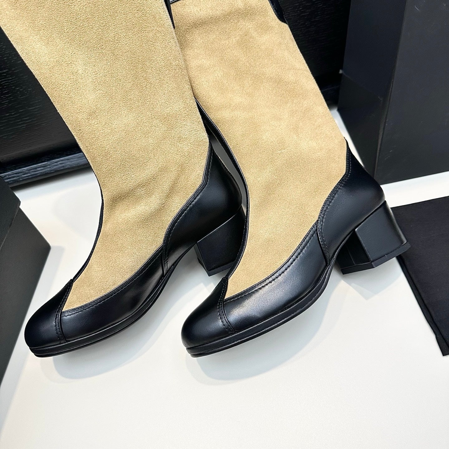 CC 25th Métiers d’art High Boots 55mm Black Beige Suede & Cowhide 413021