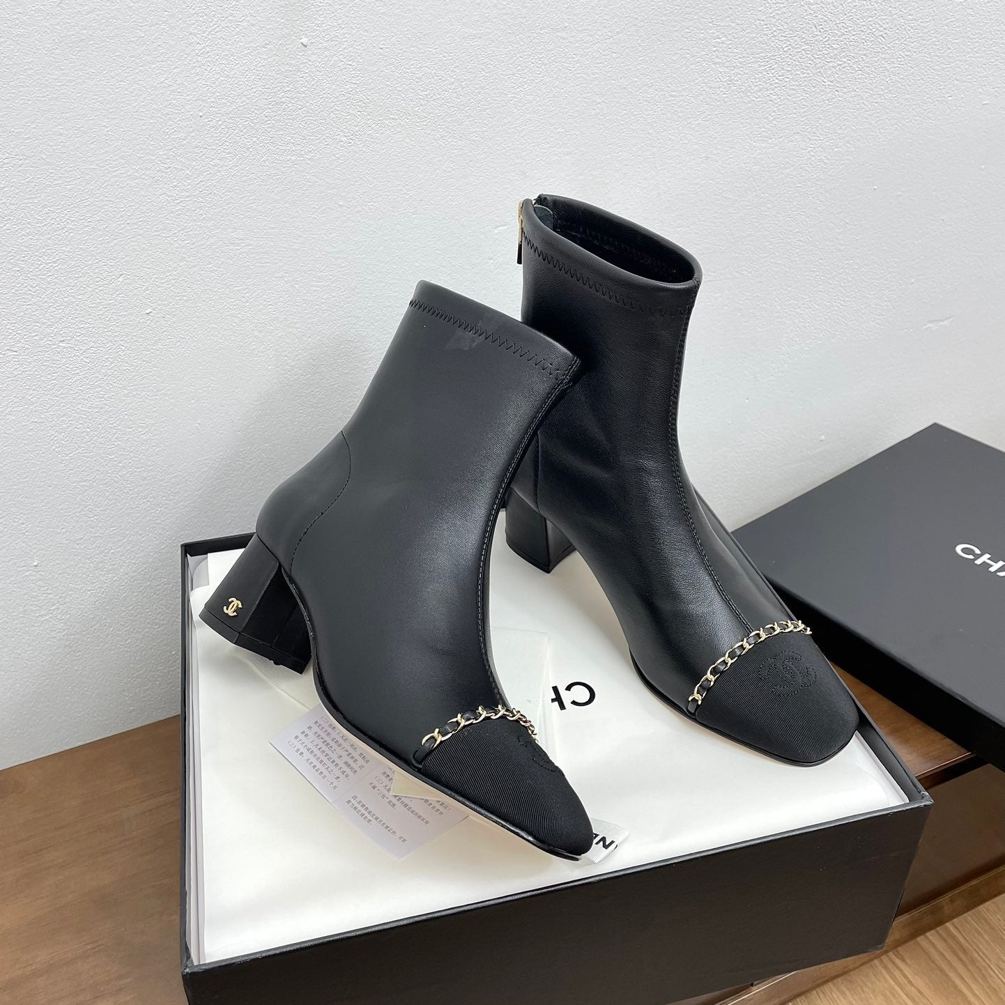 CC Ankle Boots 50mm Black Chain Lambskin