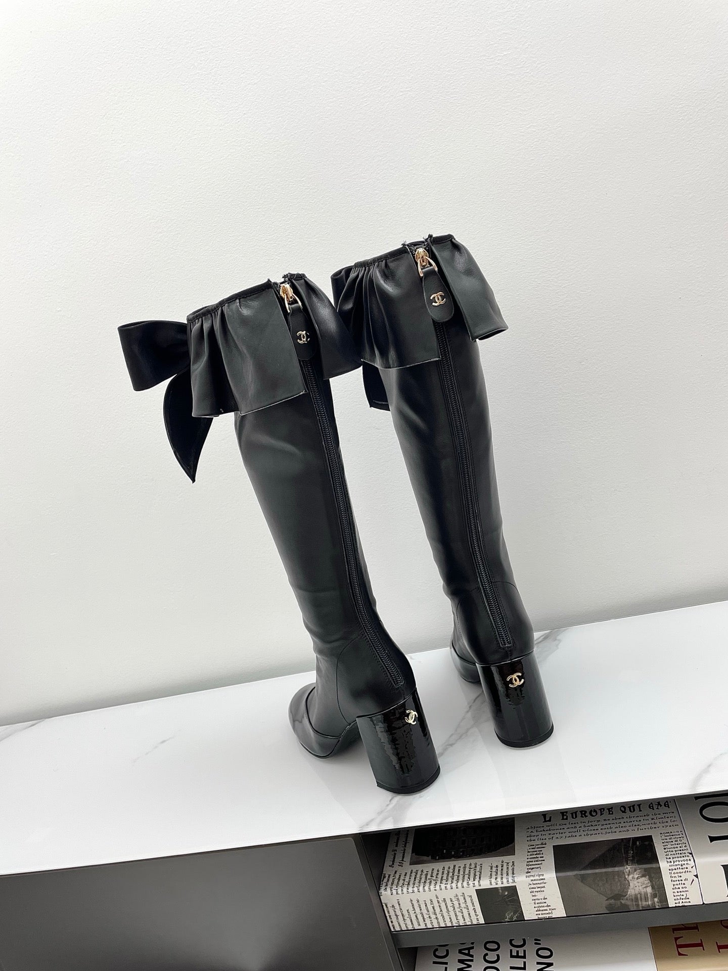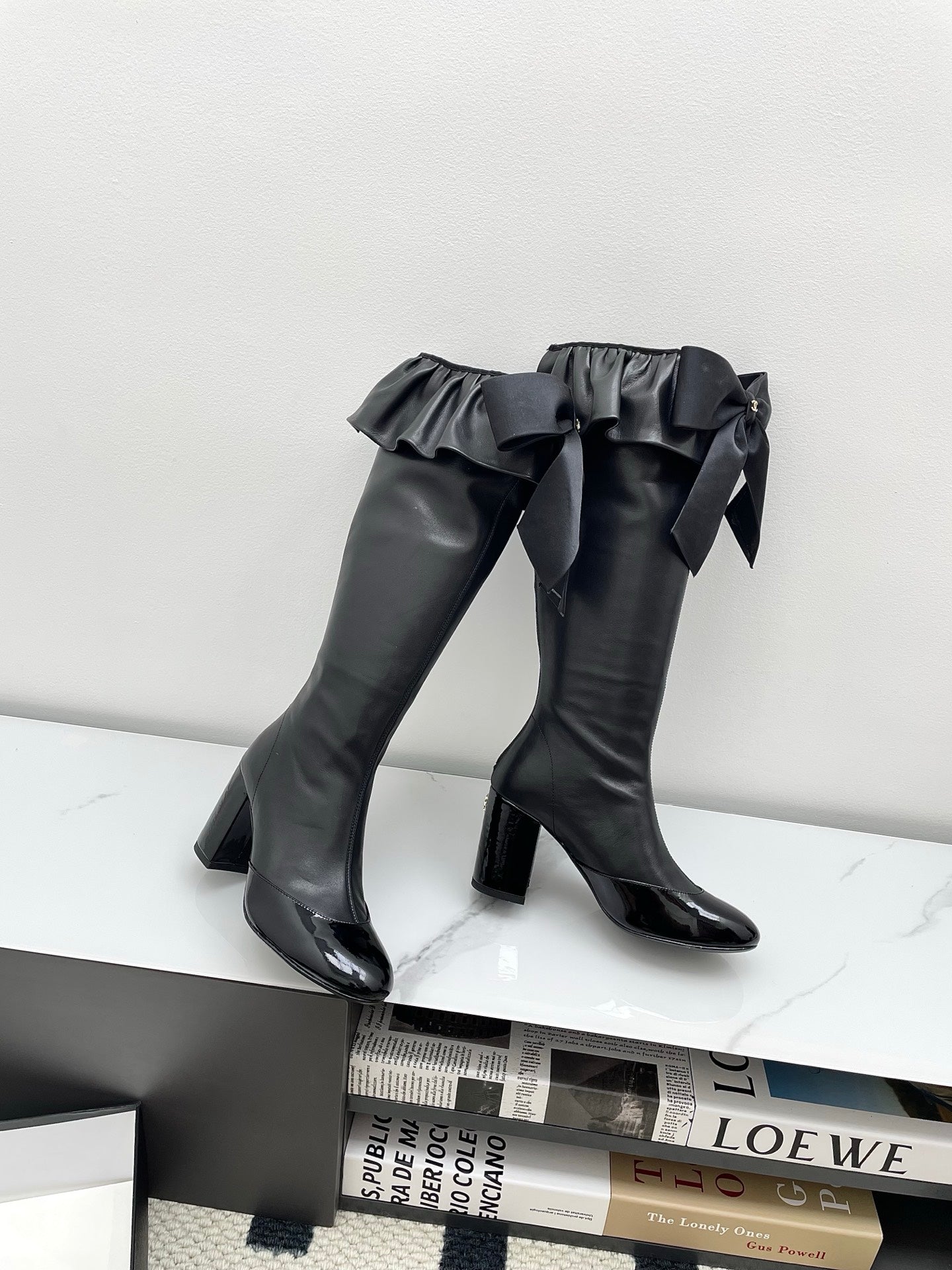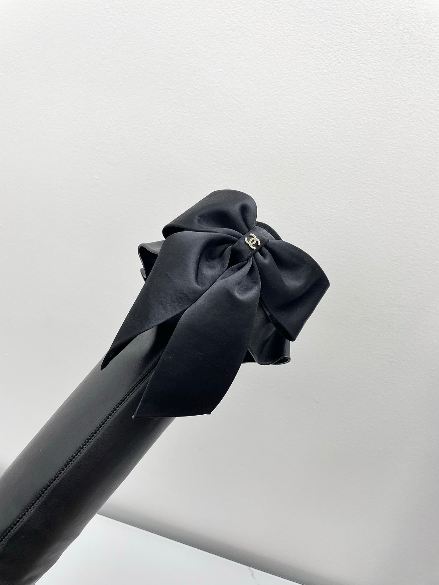 CC Big Bow Chunky Long Boots 80mm Black Cowhide 427064