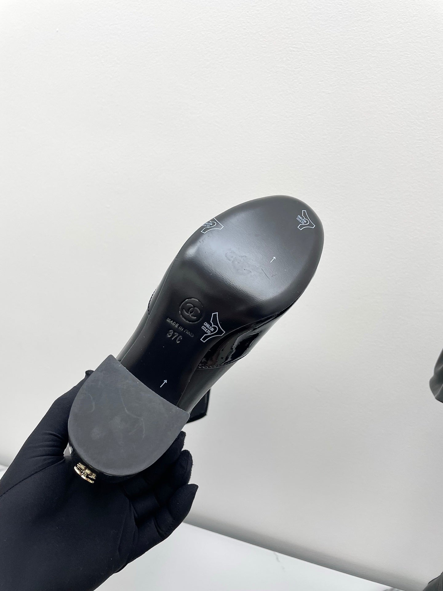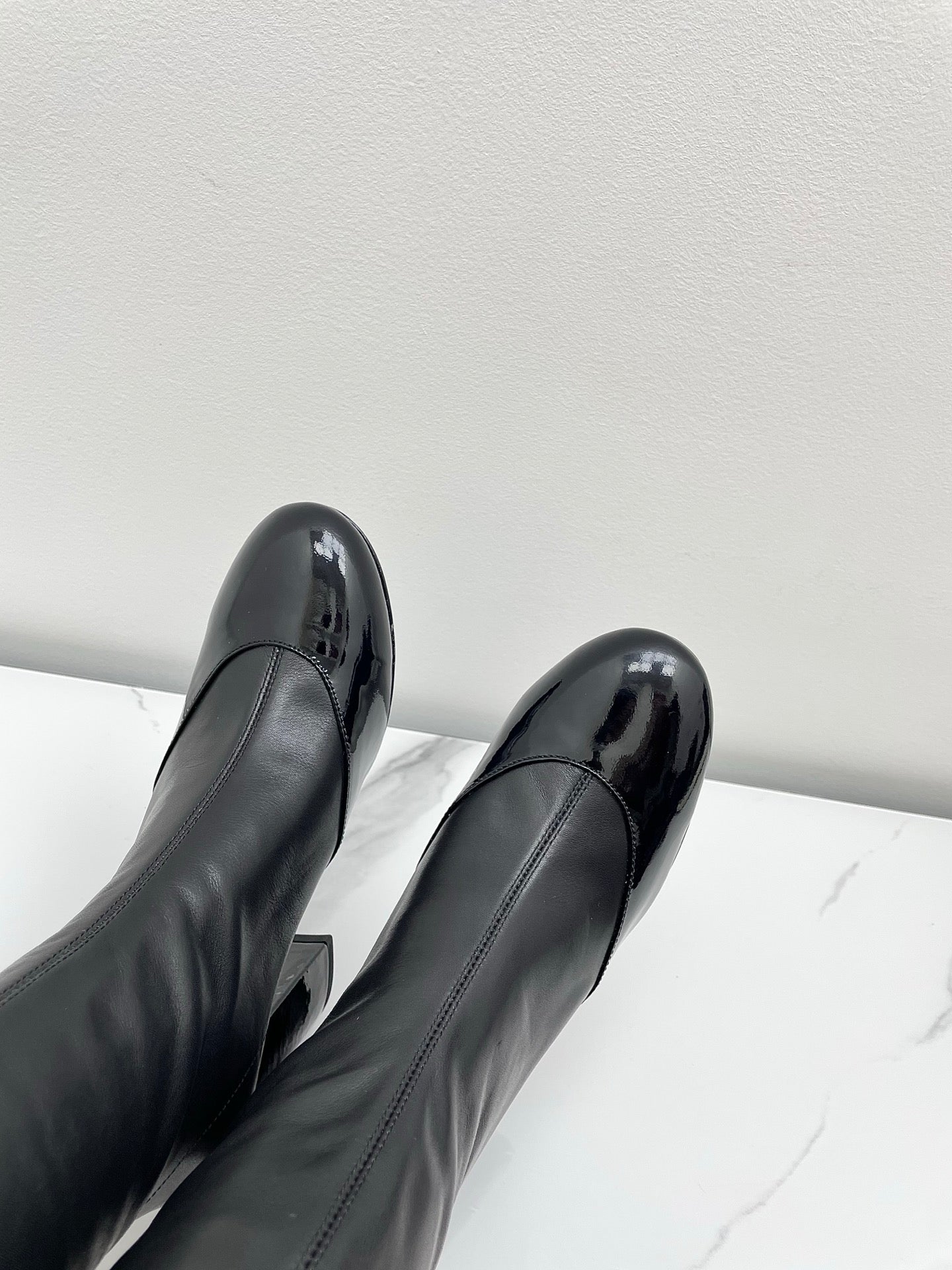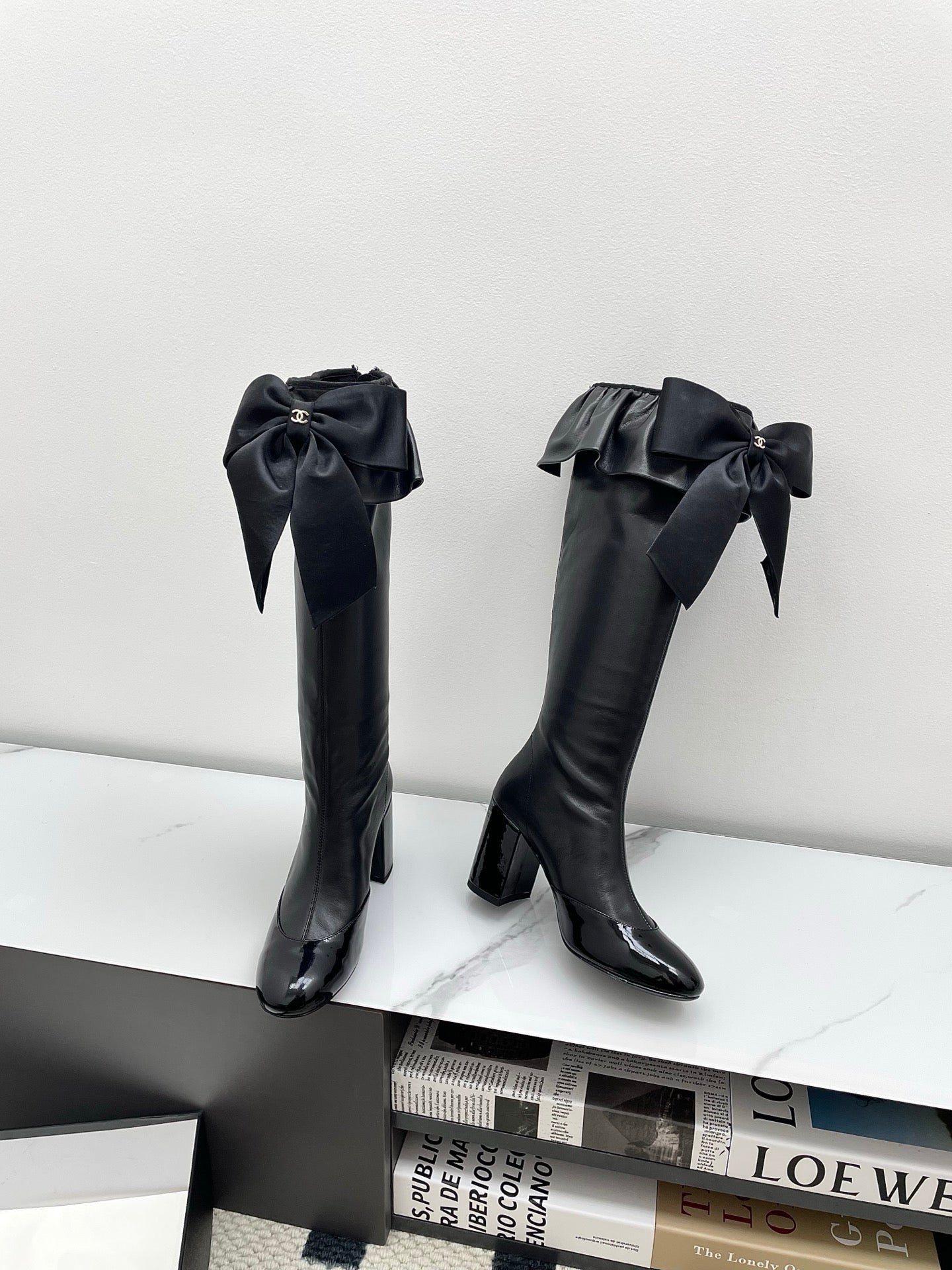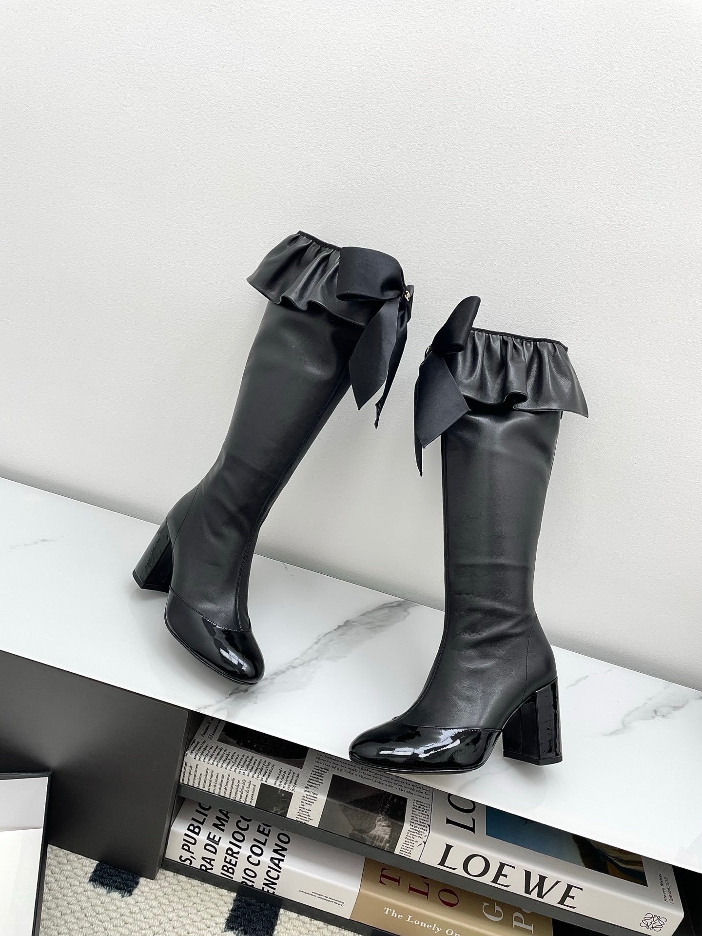 CC Big Bow Chunky Long Boots 80mm Black Cowhide 427064