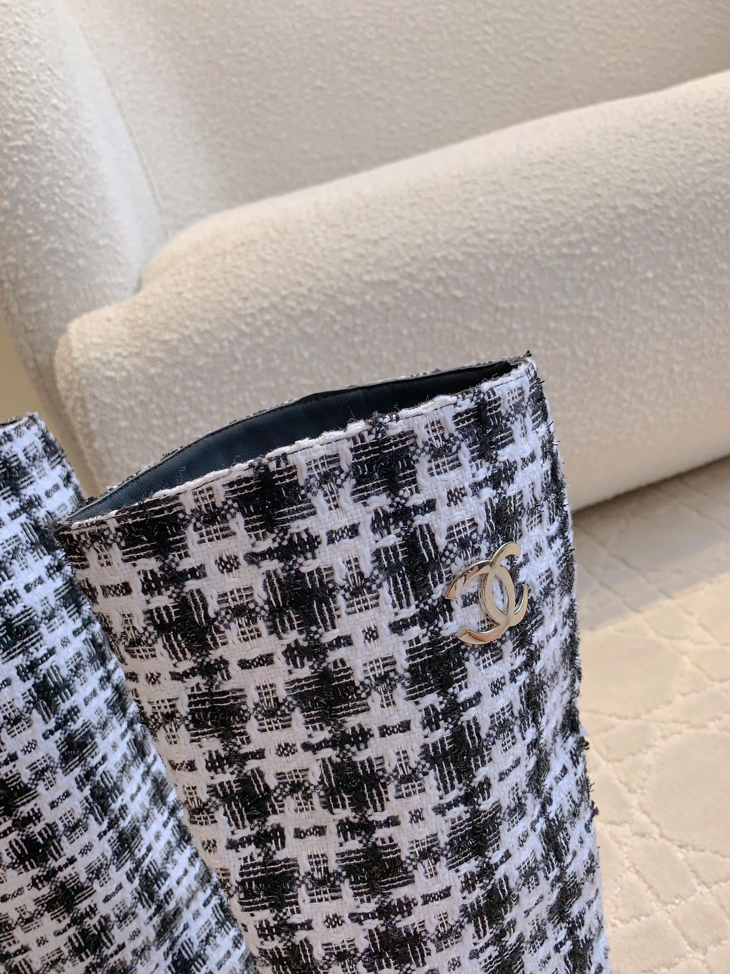 CC High Boots In White Tweed Mix Curly Wool 145501