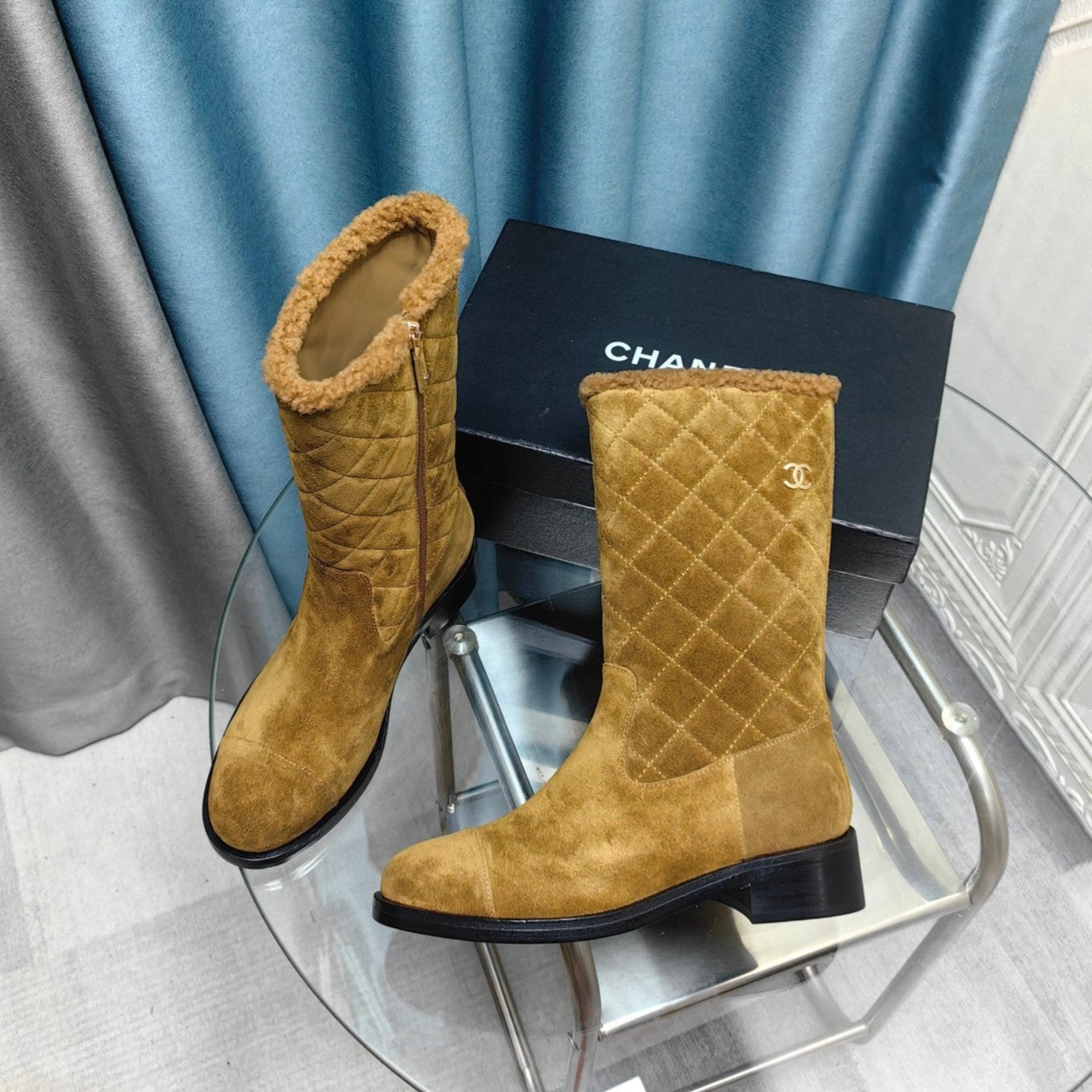 CC Short Boots Yellow Brown Suede Lining Wool And Lambskin