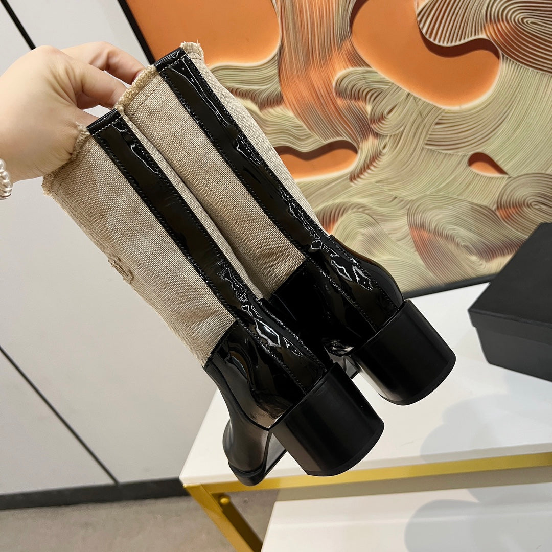 HIGH BOOTS 5.5 CM IN BLACK LAMBSKIN AND BEIGE FABRIC