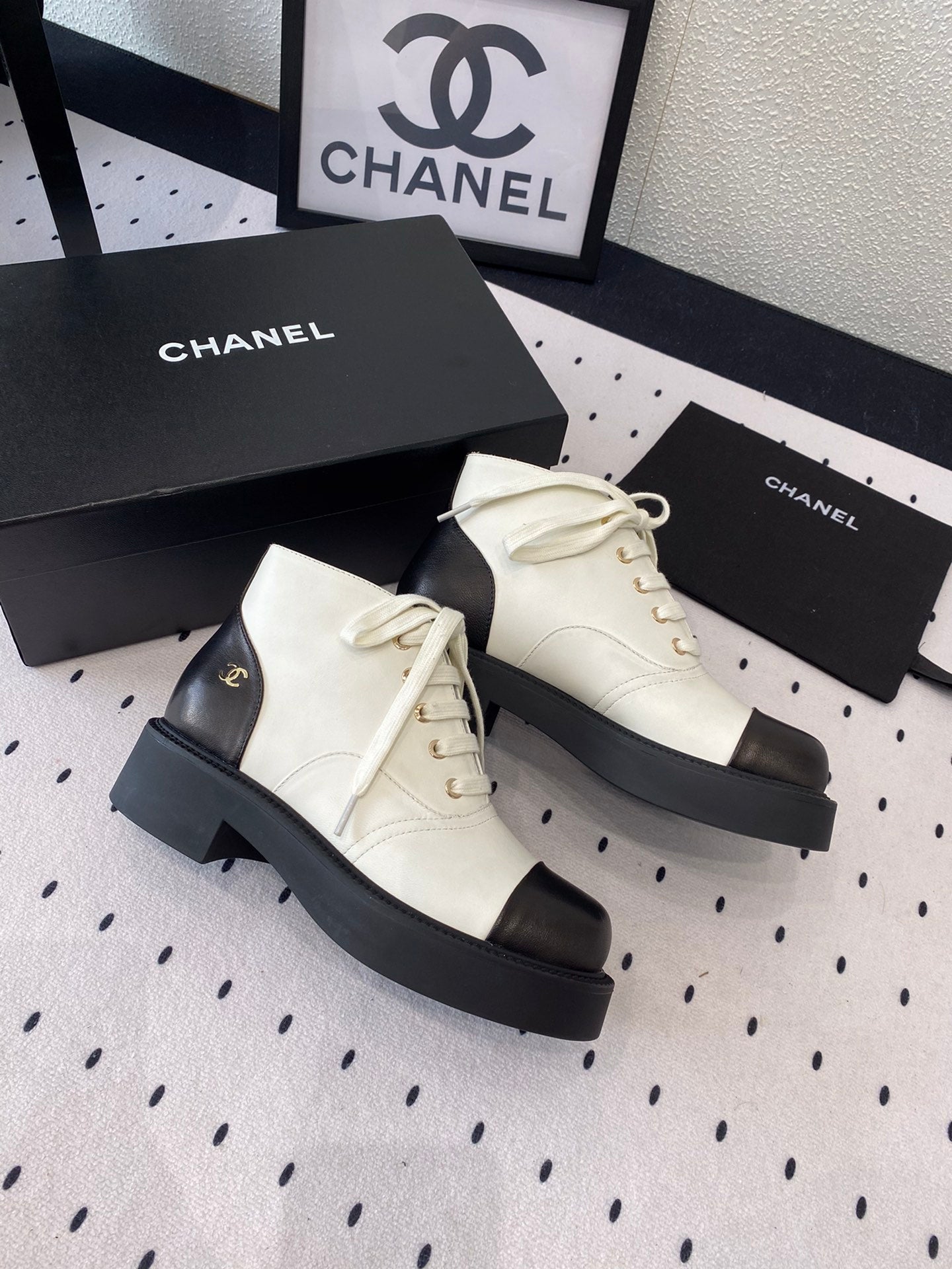 LOW-CUT BOOTS IN BLACK MIX WHITE CALFSKIN