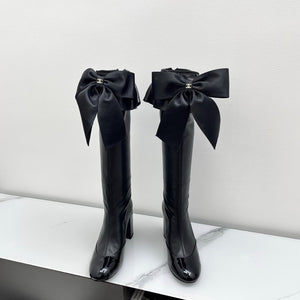 CC Big Bow Chunky Long Boots 80mm Black Cowhide 427064