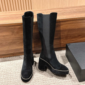 CC Métiers d’art Thigh Boots Black Suede Calfskin 417837