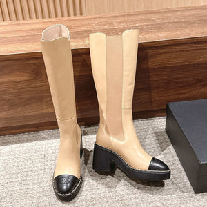 CC Métiers d’art Thigh Boots Beige Black Suede Calfskin 417836