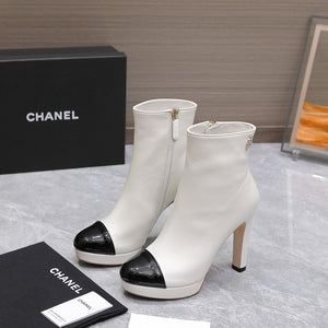 CC Platform Ankle Boots 100mm Black White Lambskin 425876