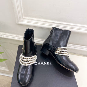CC Pearl Chain Ankle Boots Booties 35mm Black Calfskin 425463