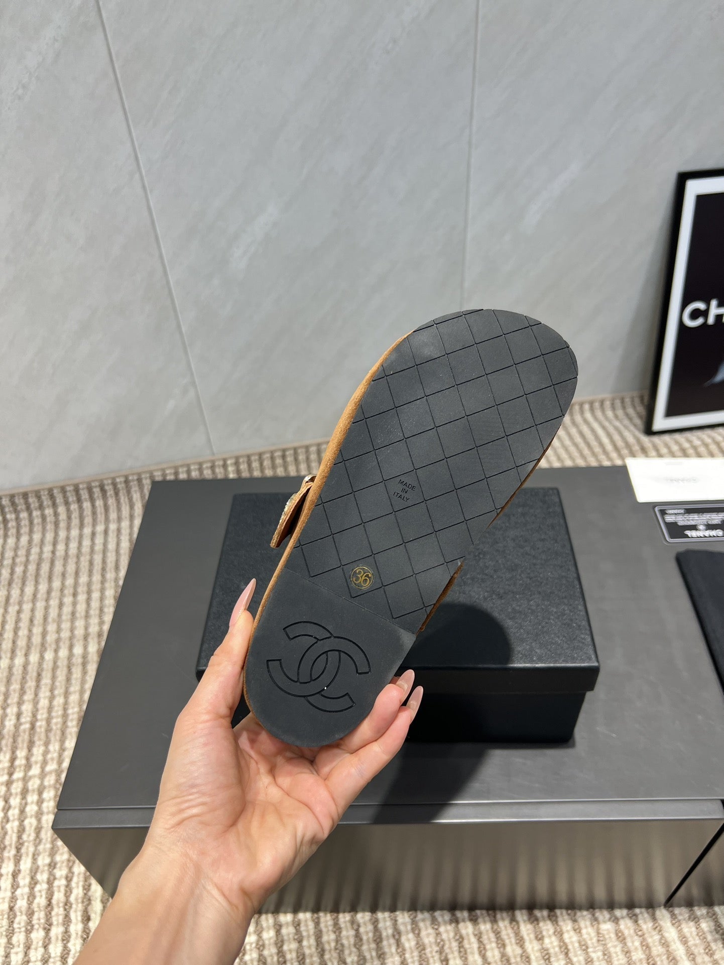 - Fabric: Original custom cowhide suede + custom diamond buckle