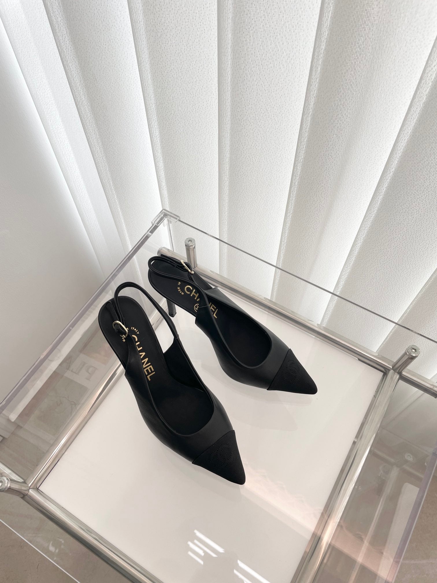 CC Slingback 95mm Black Lambskin And Denim Fabric
