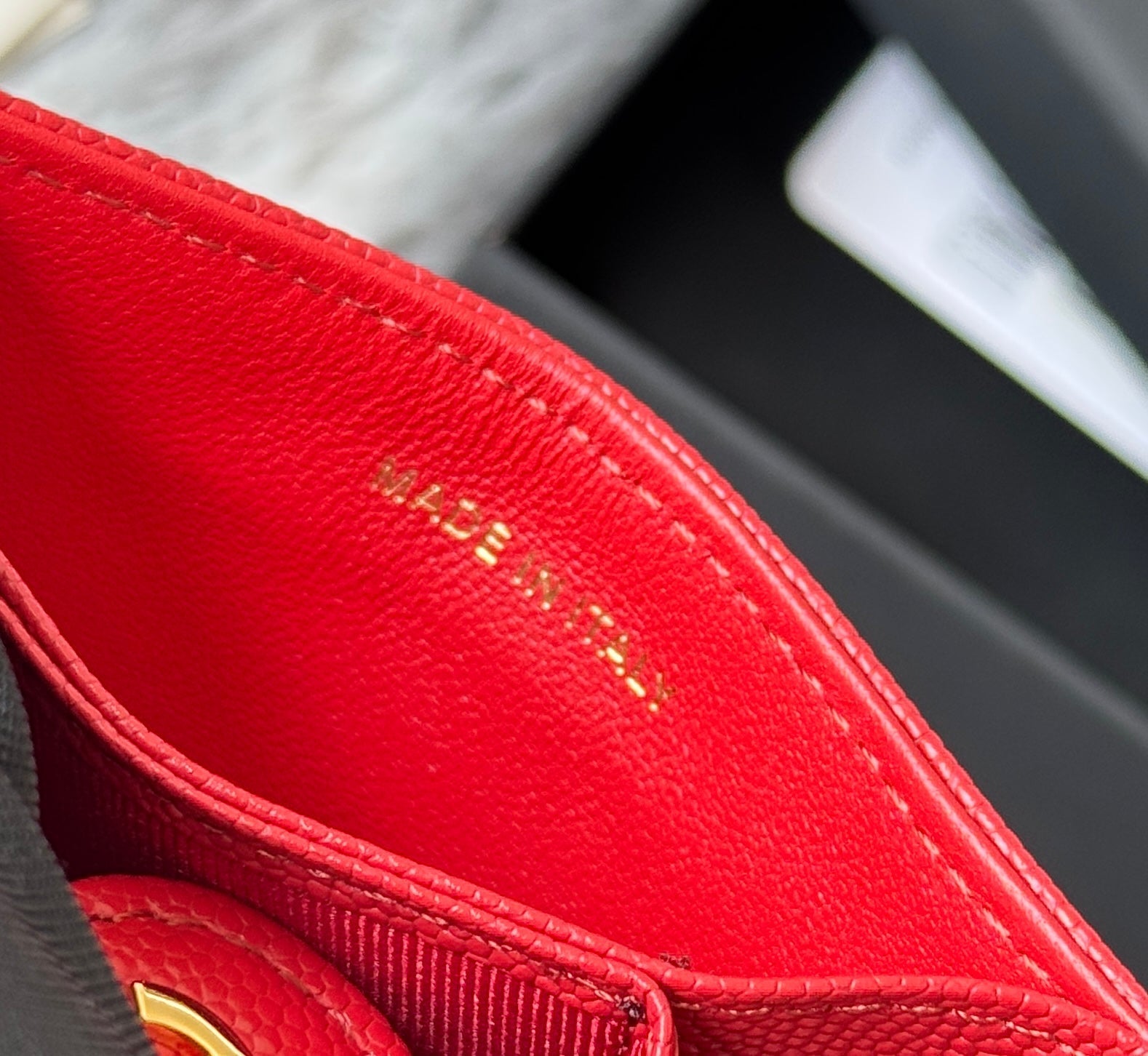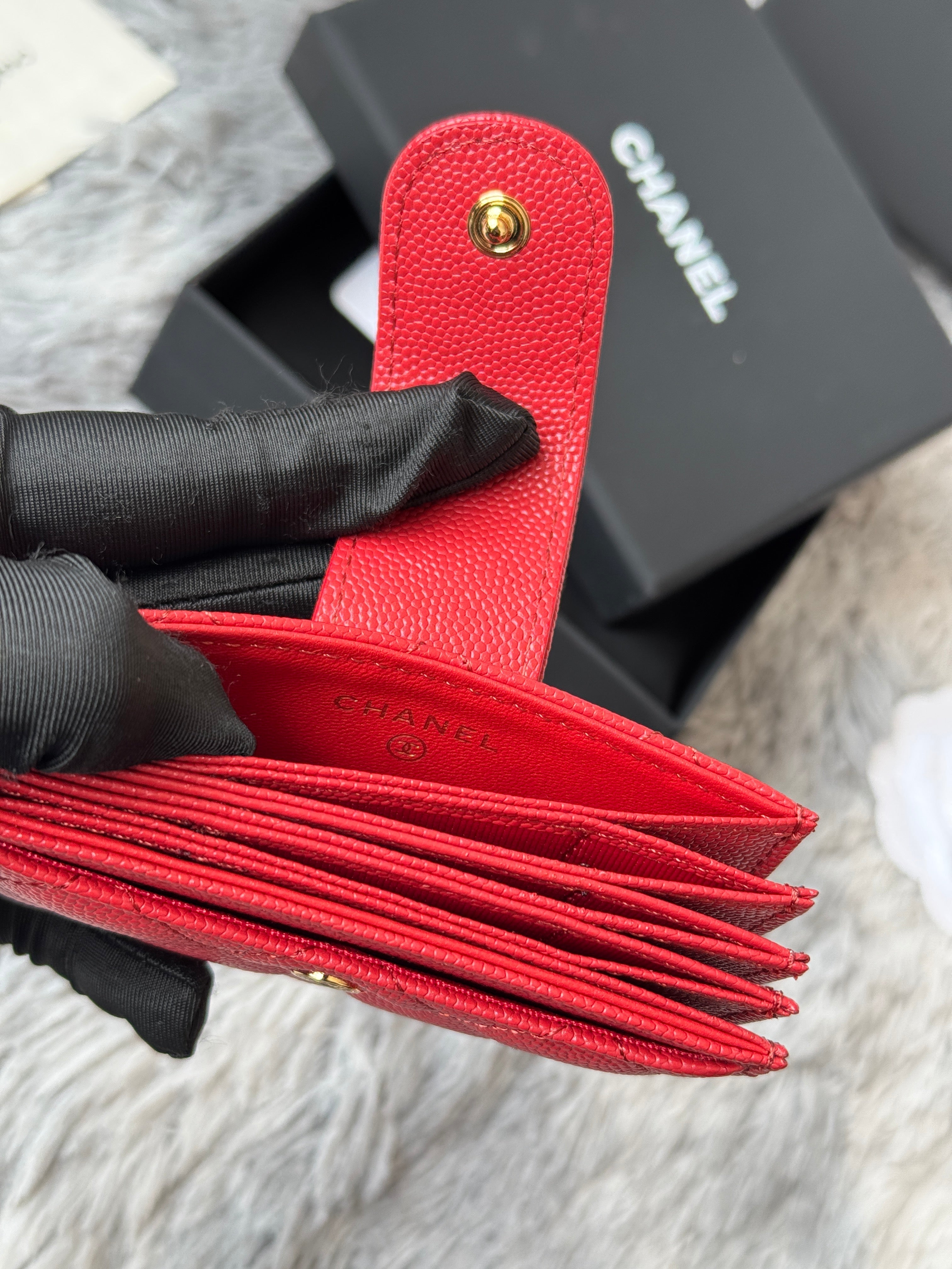 CC Accordion Card Holder Red Gold-tone Metal Caviar 242669