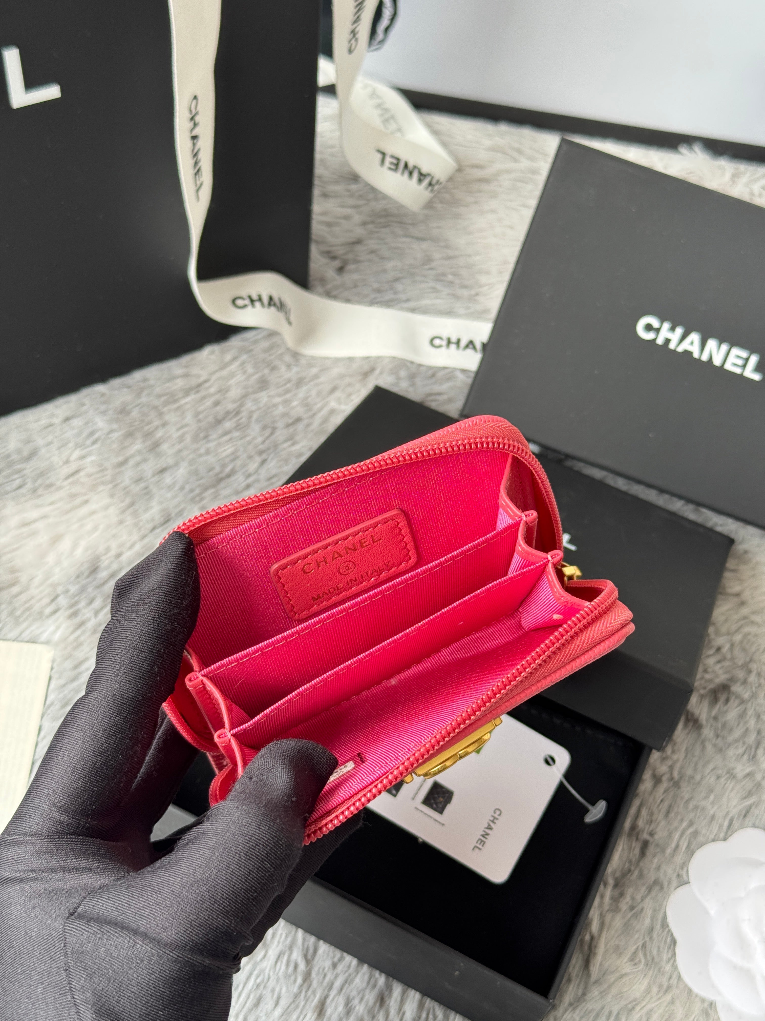 CC Classic Boy Coin Purse Pink Gold-tone Grained Calfskin 242880