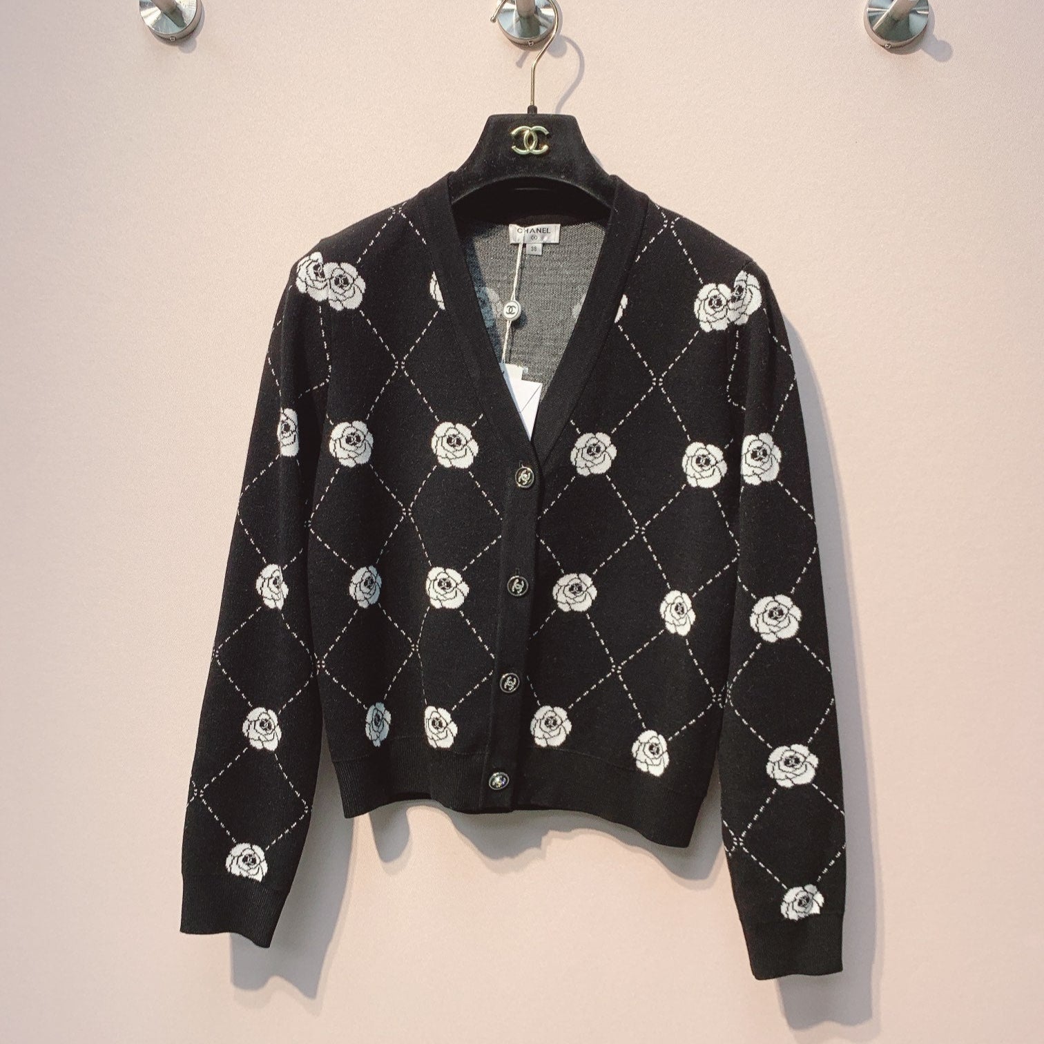 CC 25 Cardigan Black With Flowers Wool 293386