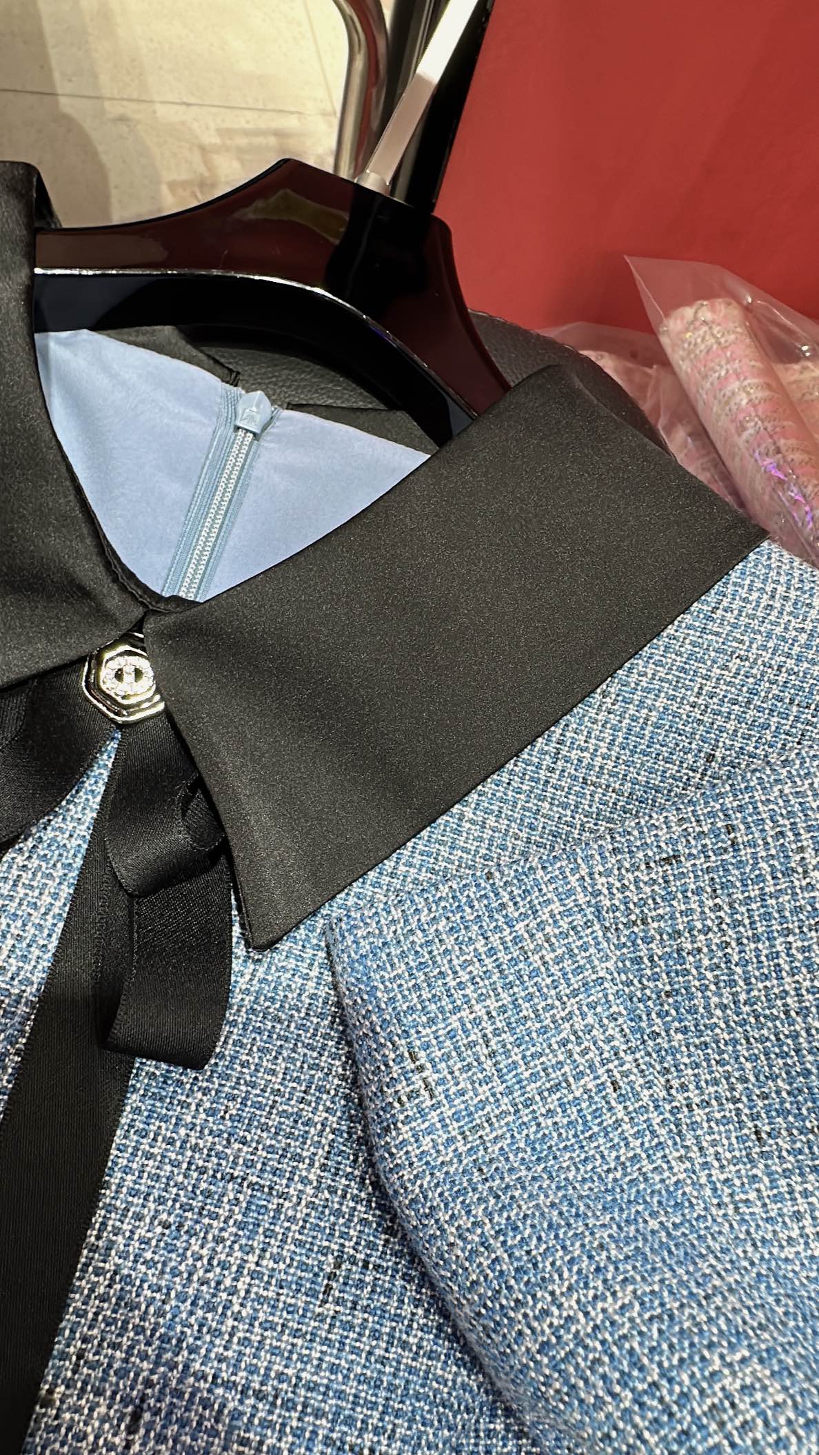 CC Vintage Suit Woolen Bow Neck Dress Blue Wool