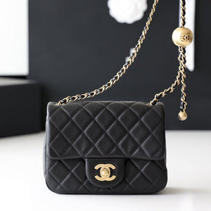 MINI SQUARE FLAP BAG 17CM BLACK LAMBSKIN CHEVRON GOLD HARDWARE