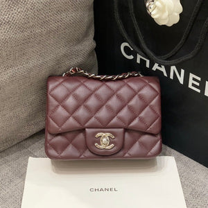 MINI SQUARE FLAP BAG 17CM BURGUNDY LAMBSKIN GOLD HARDWARE