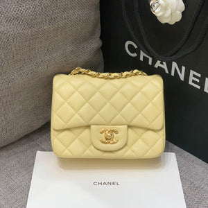 MINI SQUARE FLAP BAG 17CM YELLOW LAMBSKIN GOLD HARDWARE