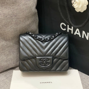 MINI SQUARE FLAP BAG 17CM BLACK LAMBSKIN CHEVRON BLACK HARDWARE