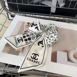 BLACK MIX WHITE MONOGRAM SILK SCRUNCHIES 432896