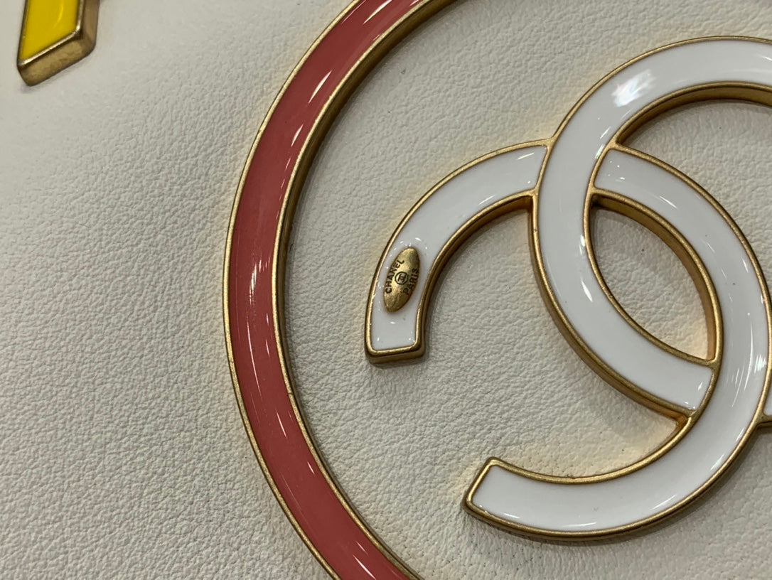 CC DEAUVILLE TOTE BAG 39CM WHITE CALFSKIN MULTICOLOR LOGO
