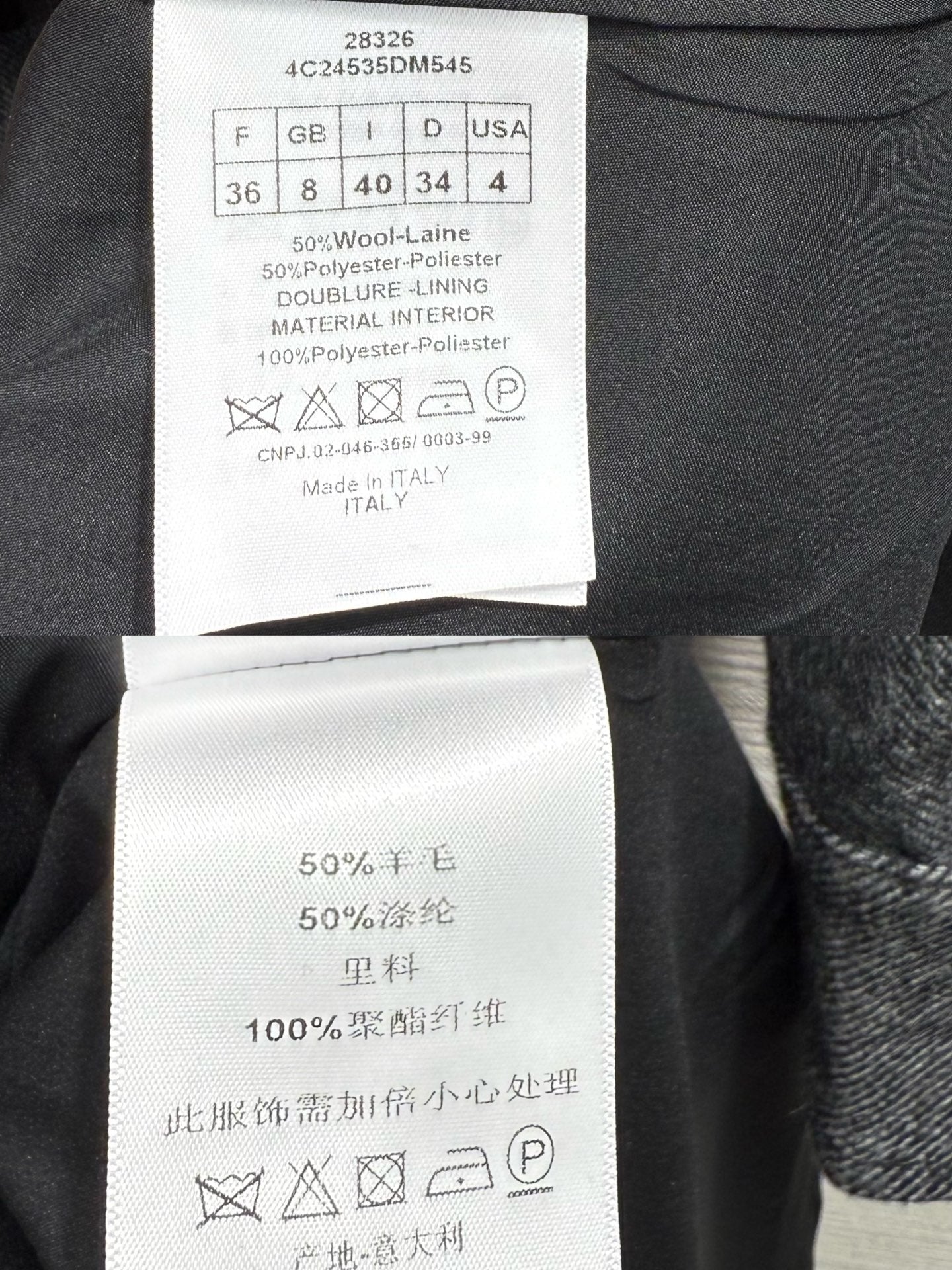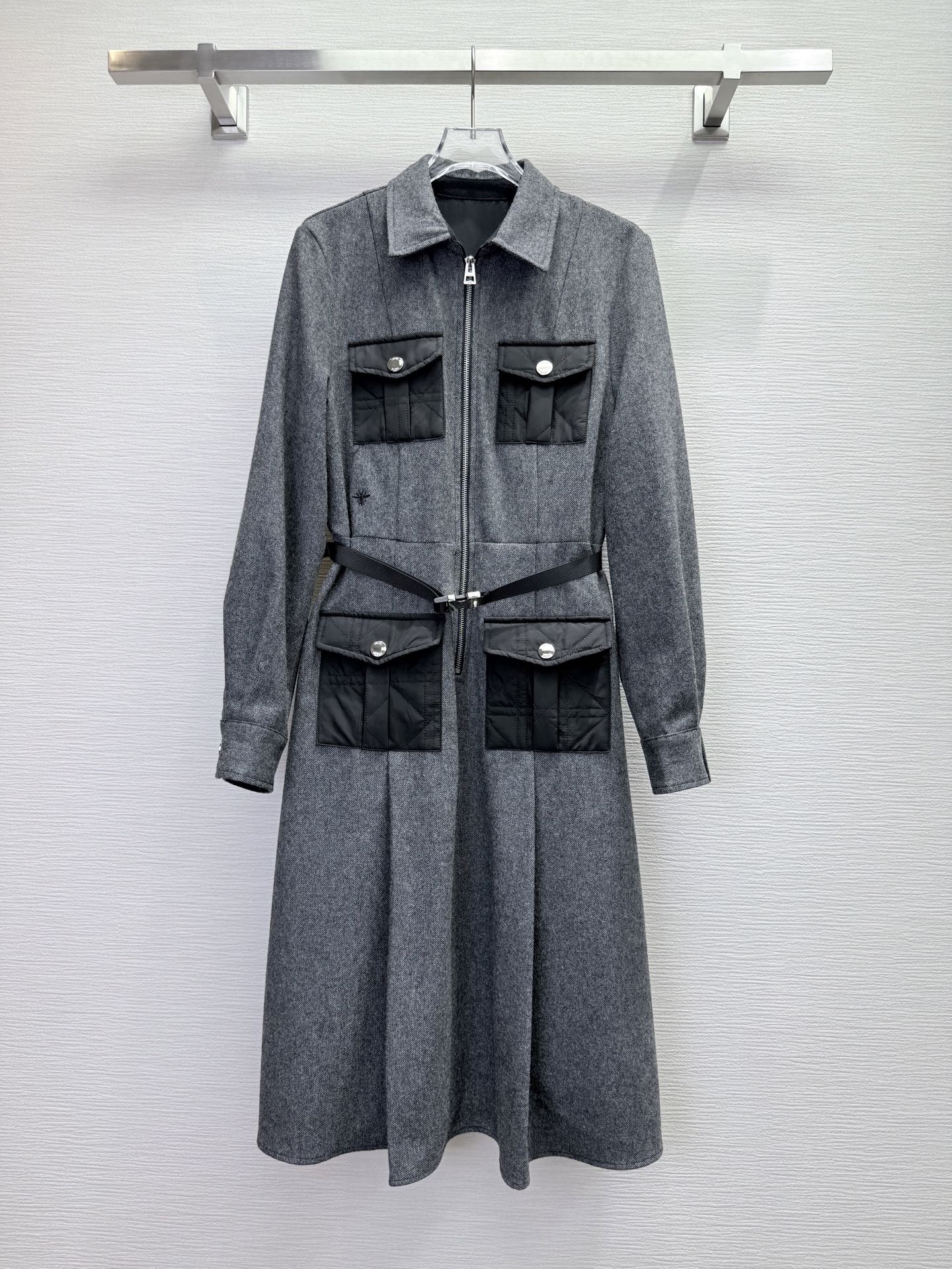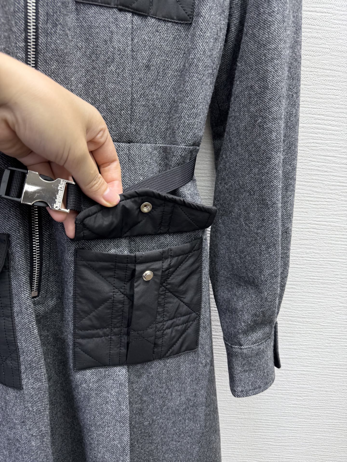 CD 25SS Lapel Middle Zipper Guilted Four Pockets Contrast Color Dress Gray Wool 304163