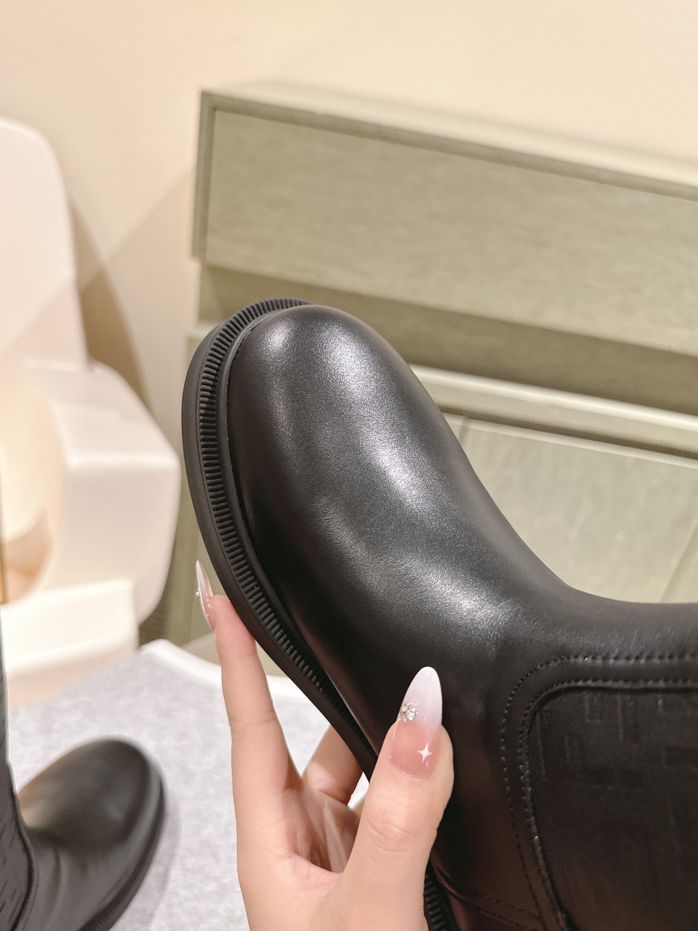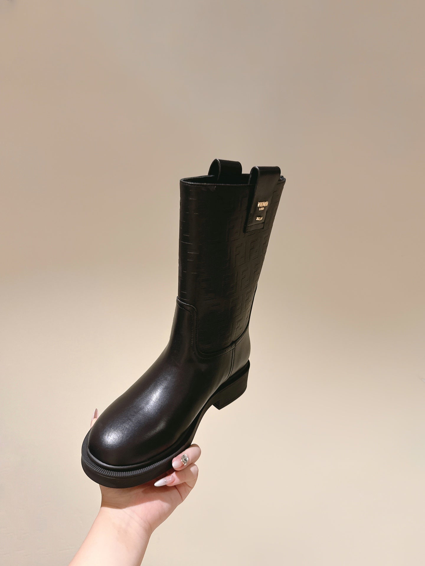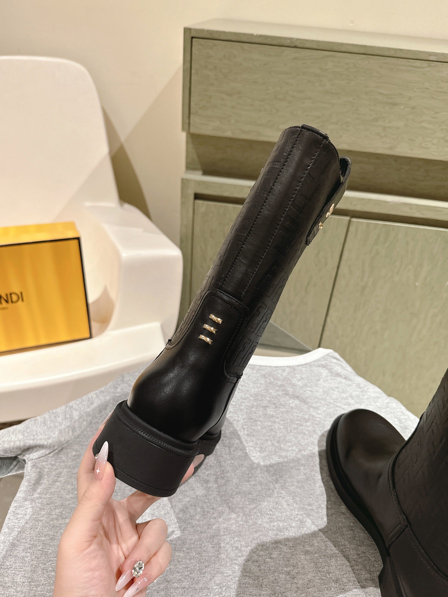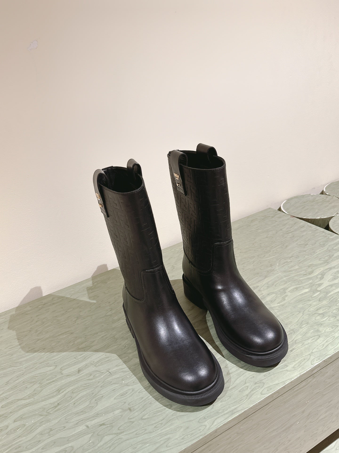 Fendi Ankle Boots F Embossed Pattern Black Cowhide 463741