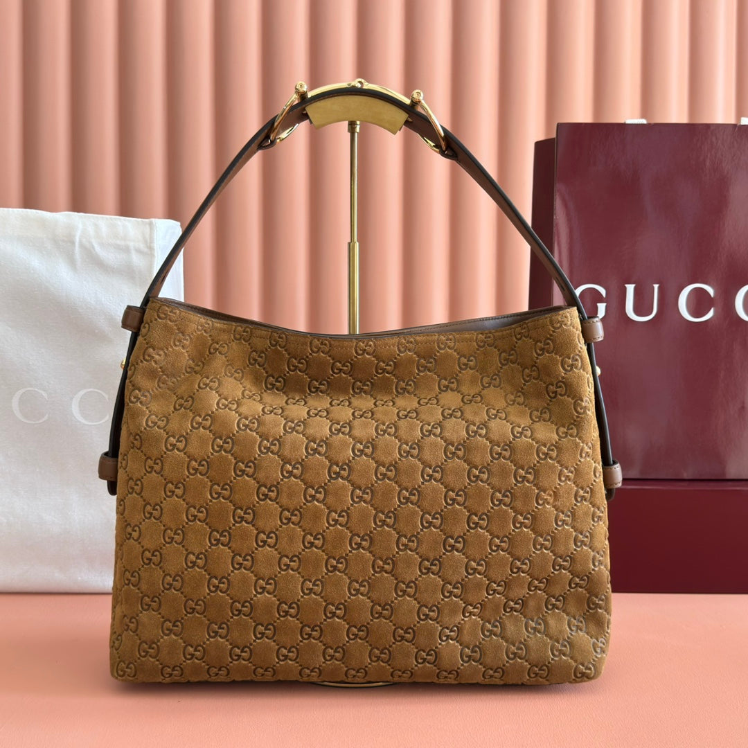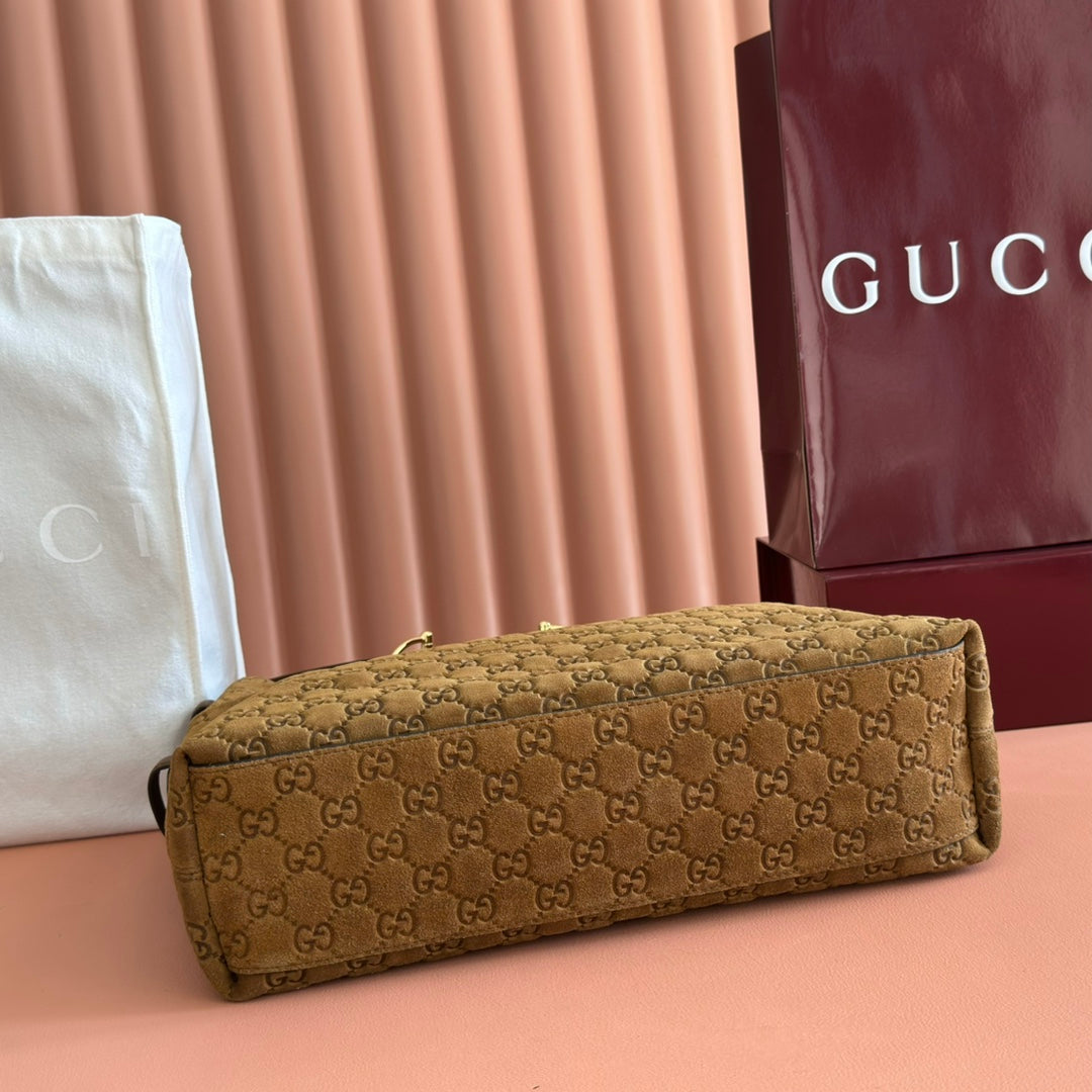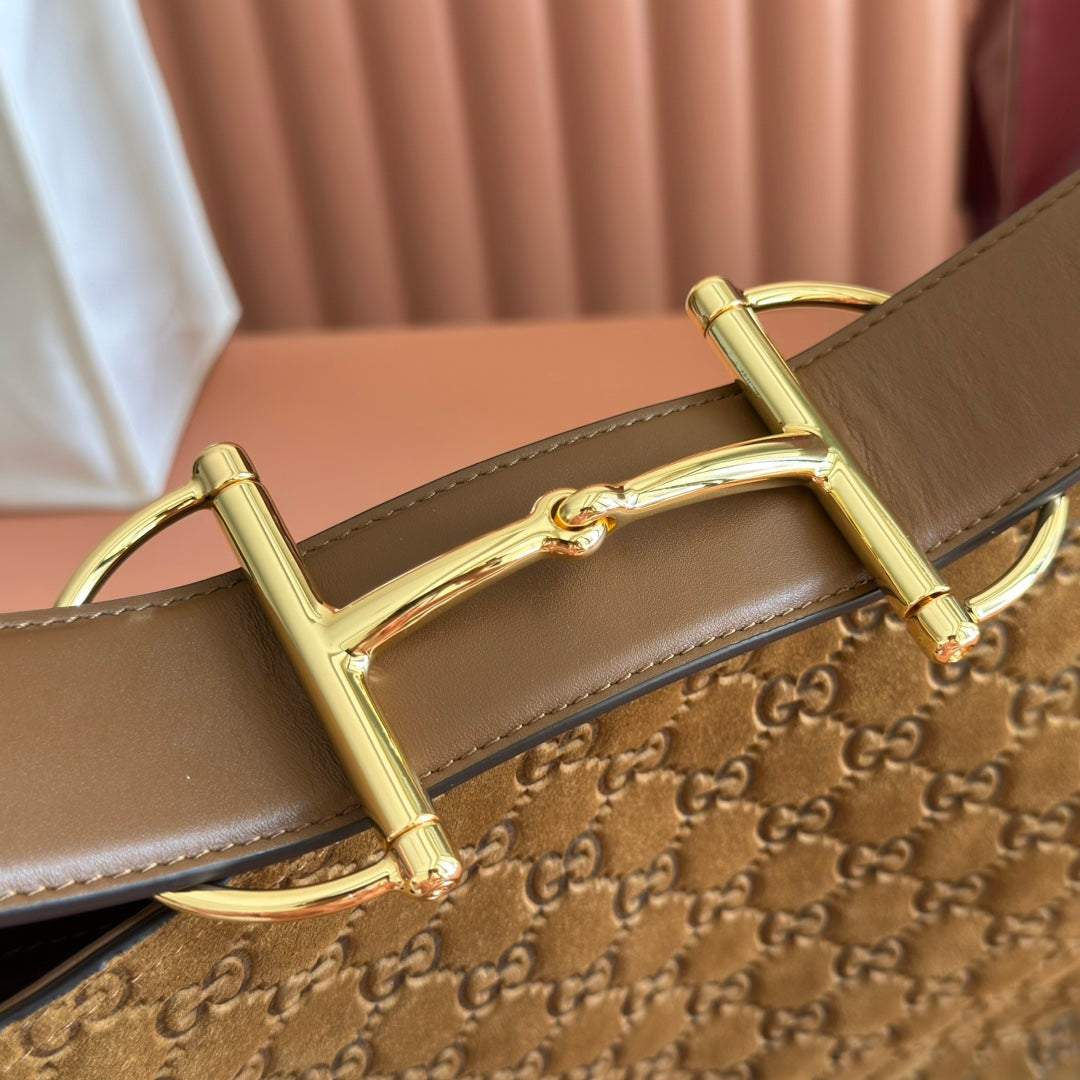 GG 25FW Beatrix Horsebit Handbag 35cm Brown Suede GHW