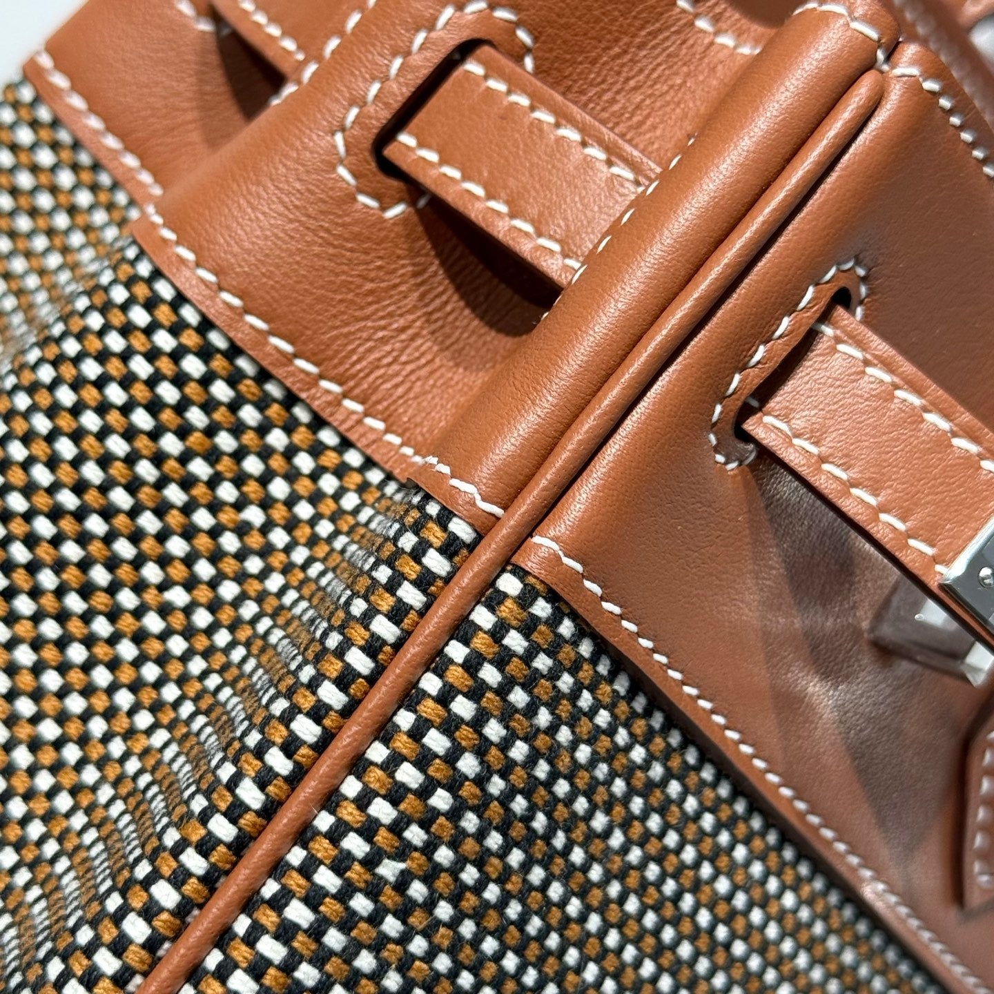 HM Birkin 25cm Golden Brown Swift Cowhide With Waffe Brown Canvas Fabric Shw 249988