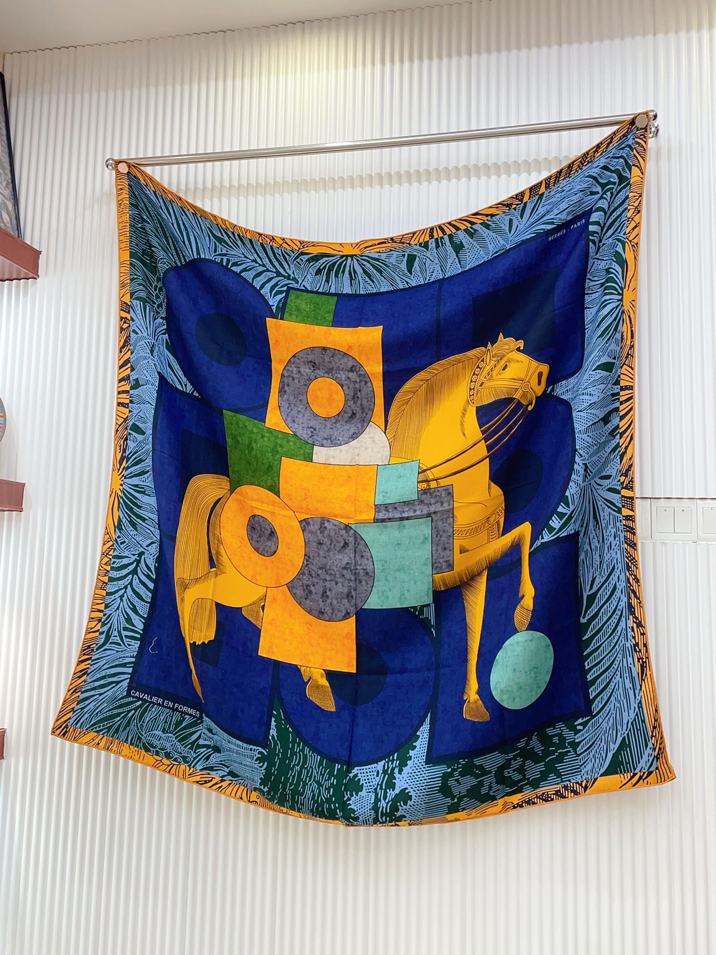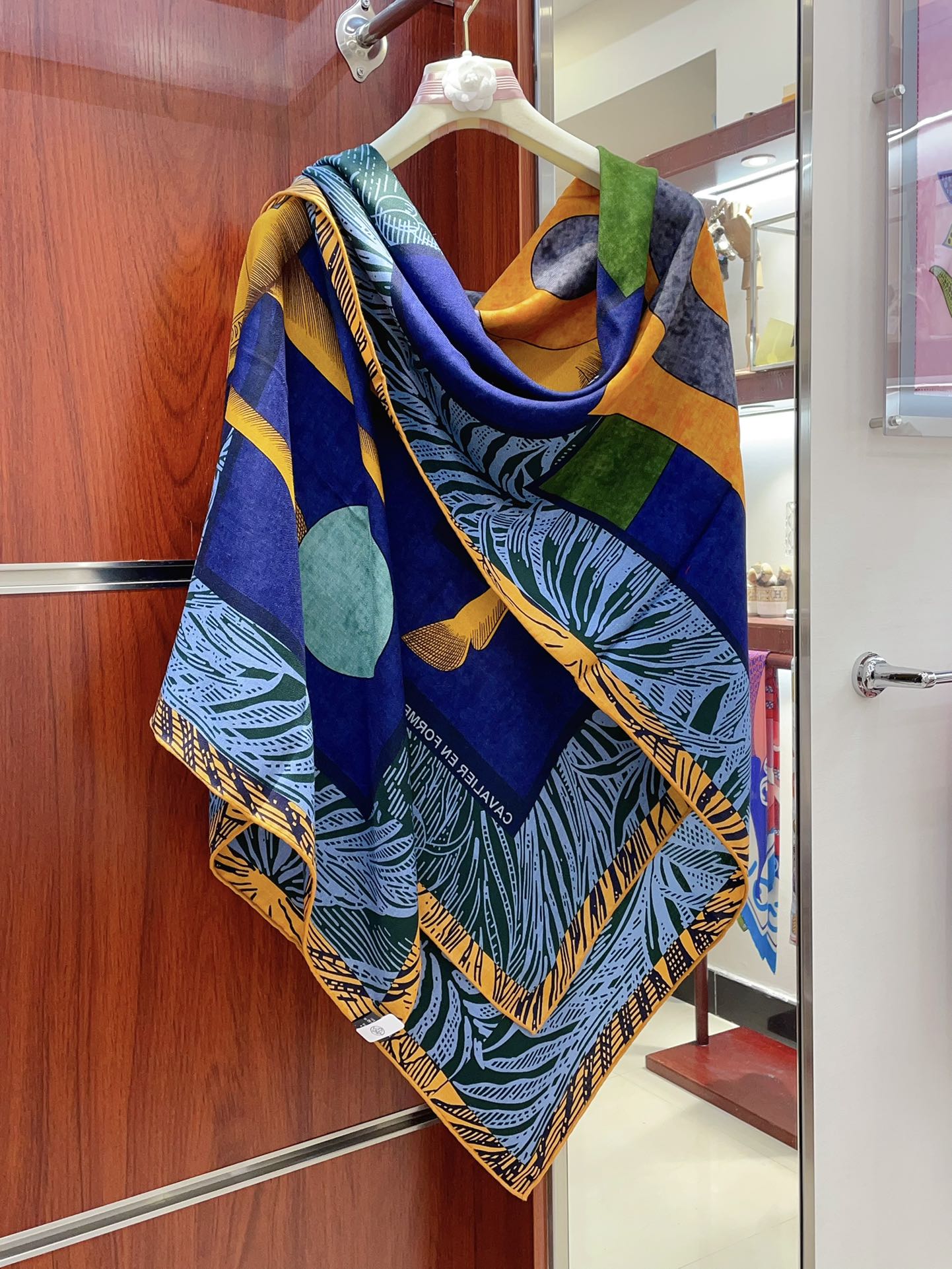 Cavalier en Formes shawl 140 CM In Dark Blue Colorful Cashmere And Silk 331715
