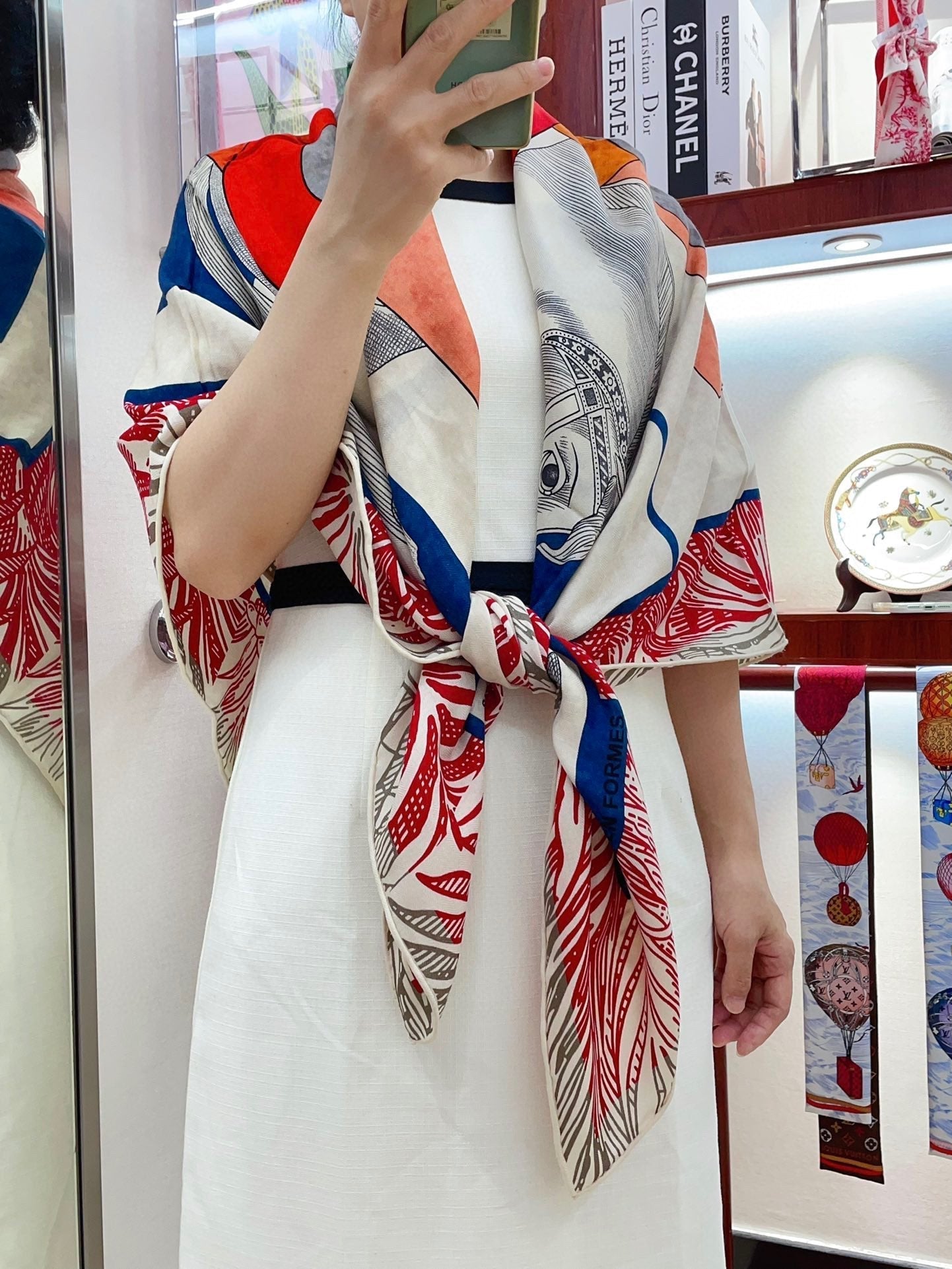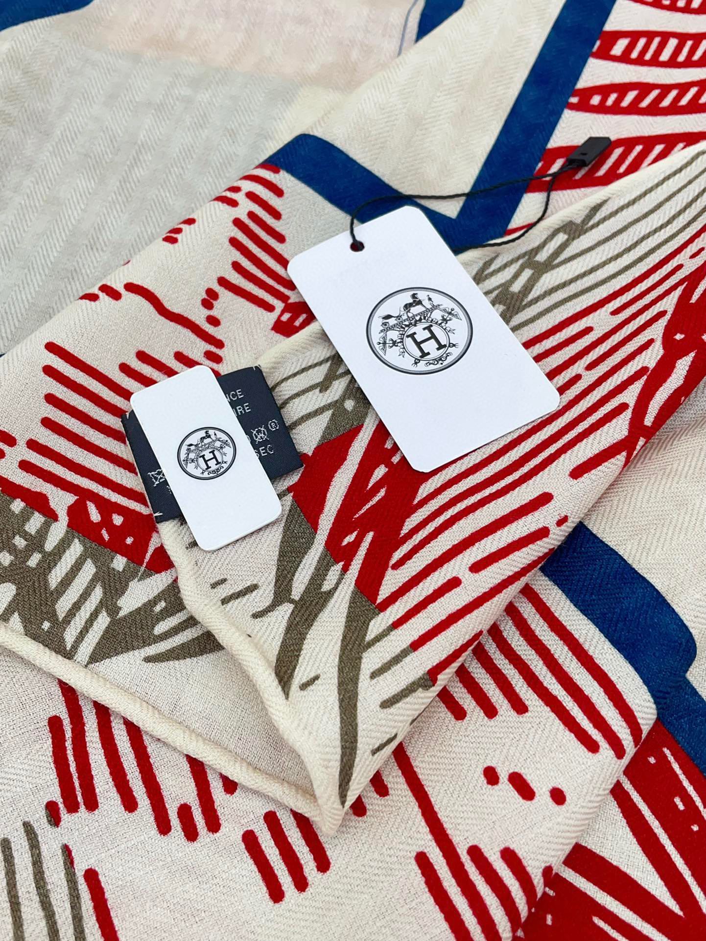 Cavalier en Formes shawl 140 CM In Red Colorful Cashmere And Silk 331717