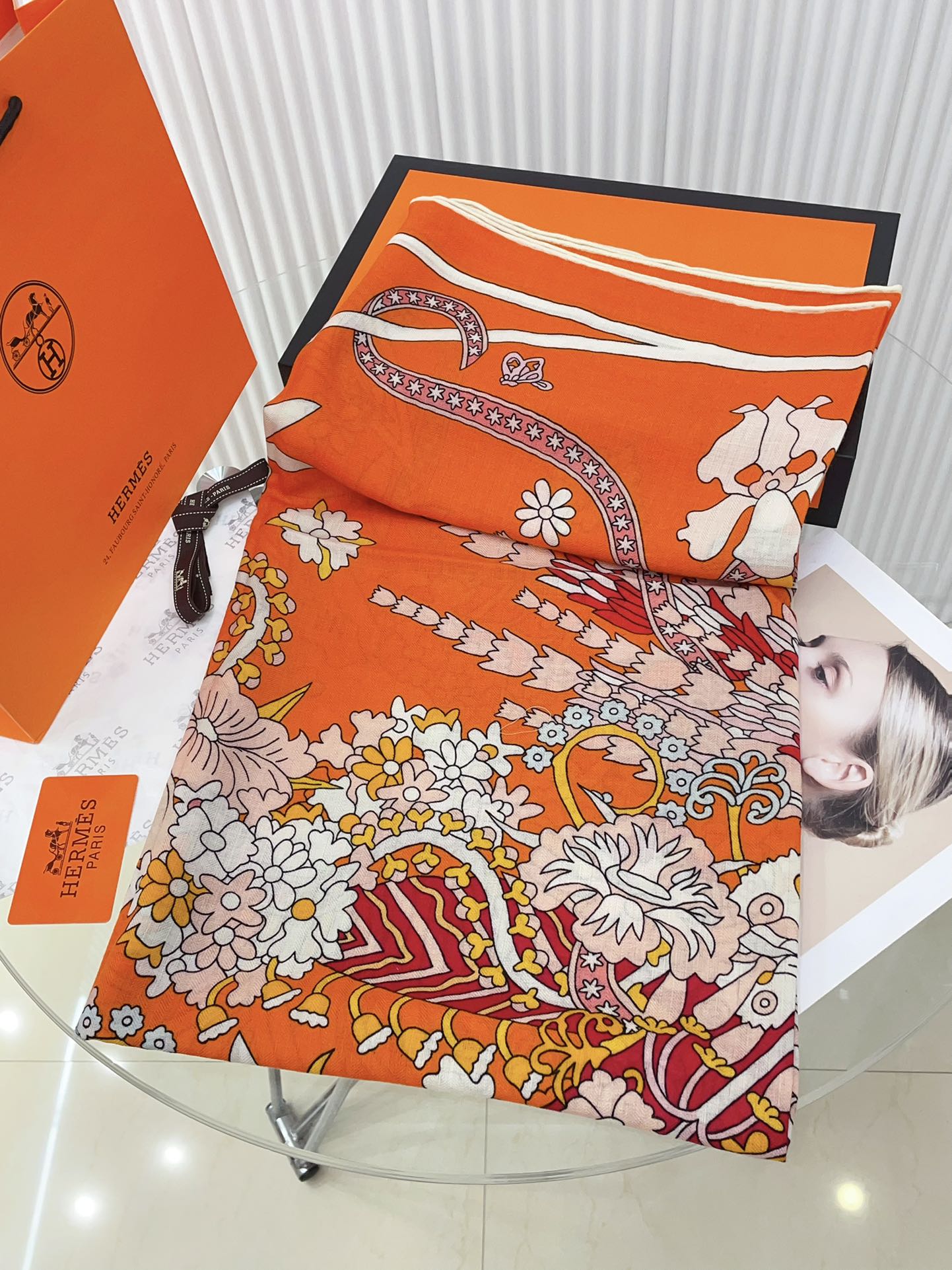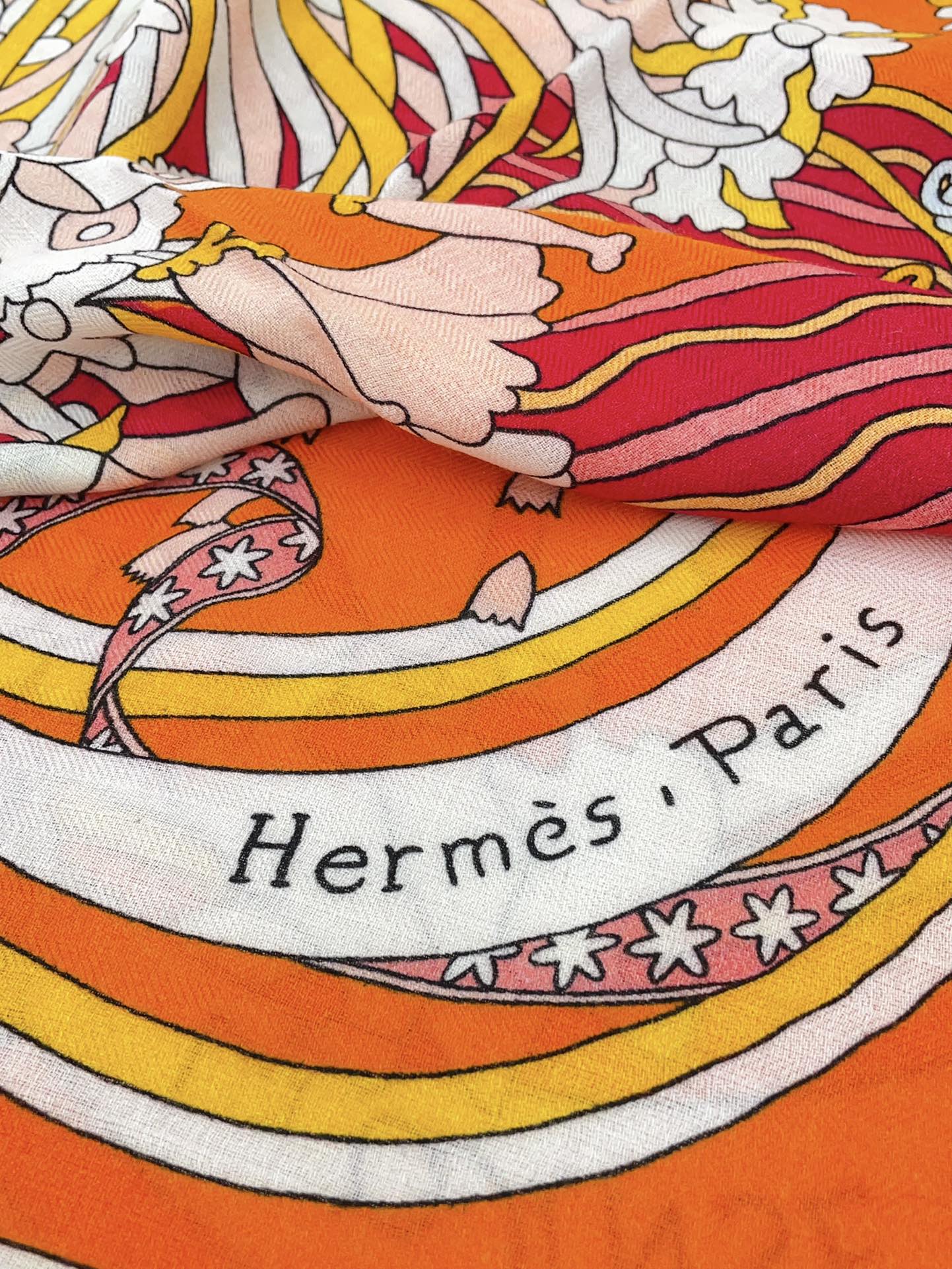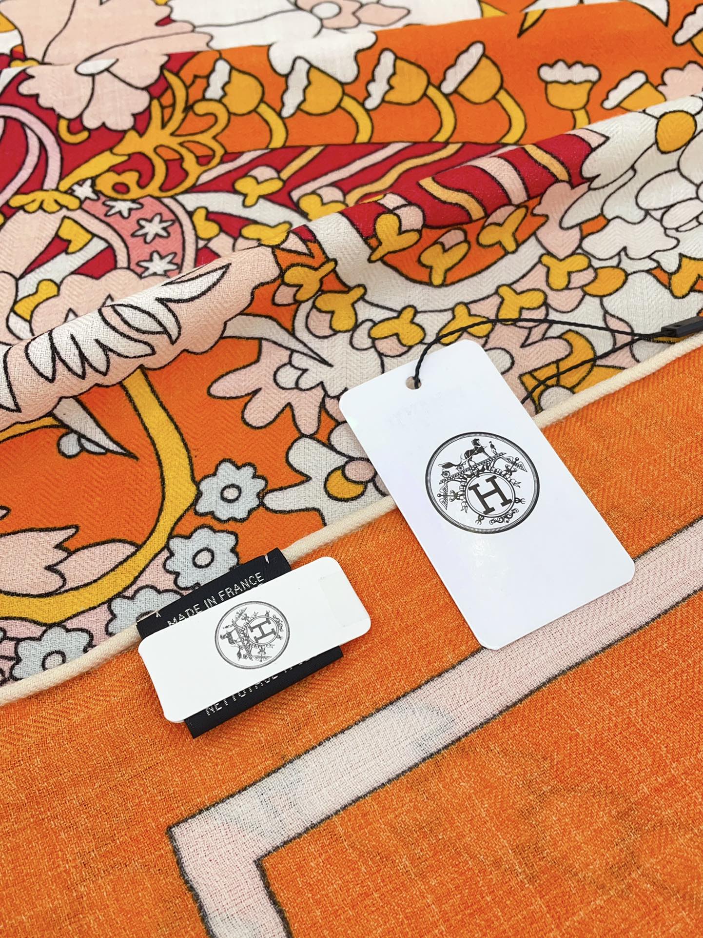La Danse Du Printemps Scarf 140 In Orange Colorful Cashmere And Silk 344365