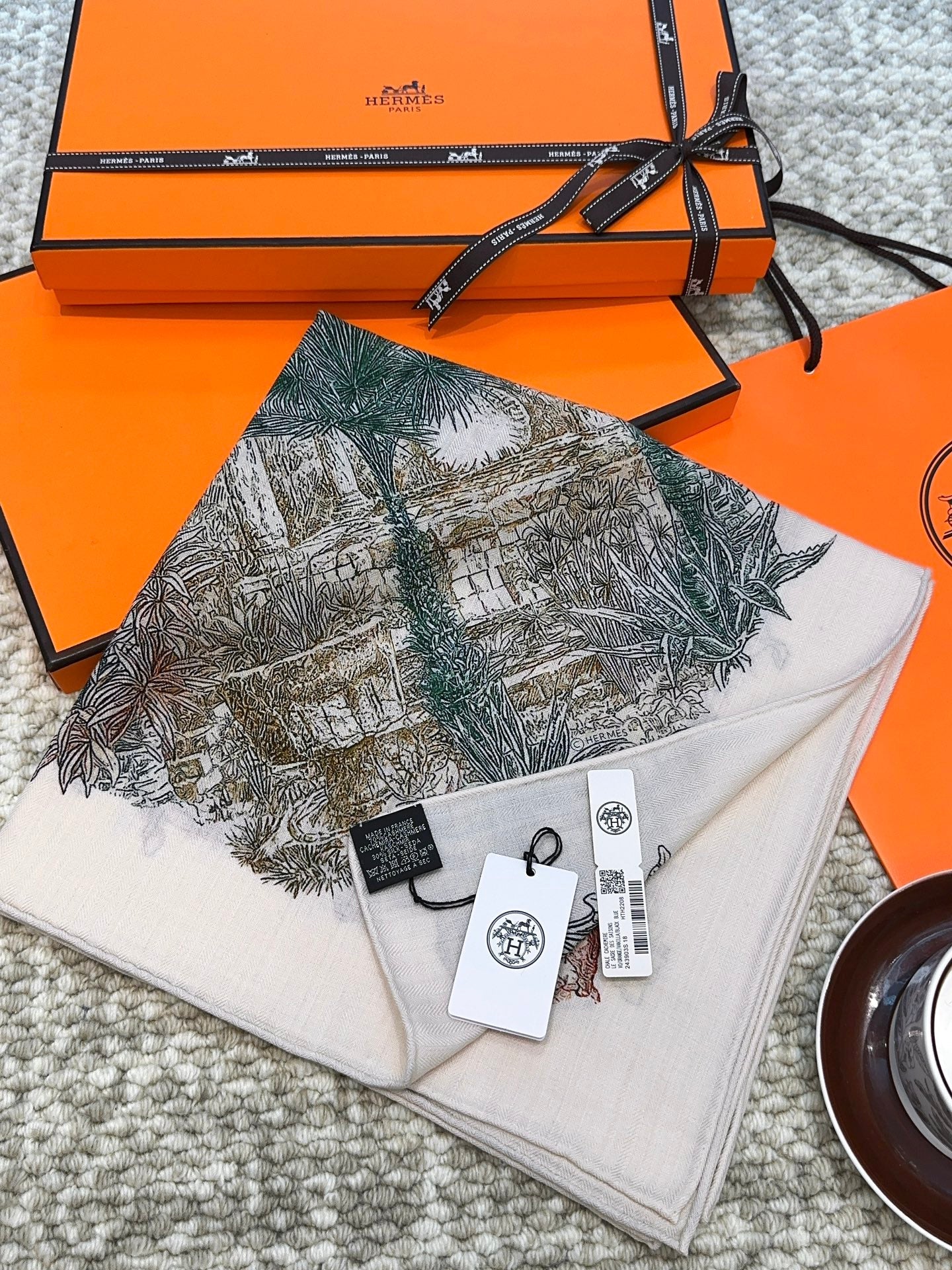 Scarf 140 CM Brown Colorful Cashmere And Silk 394551