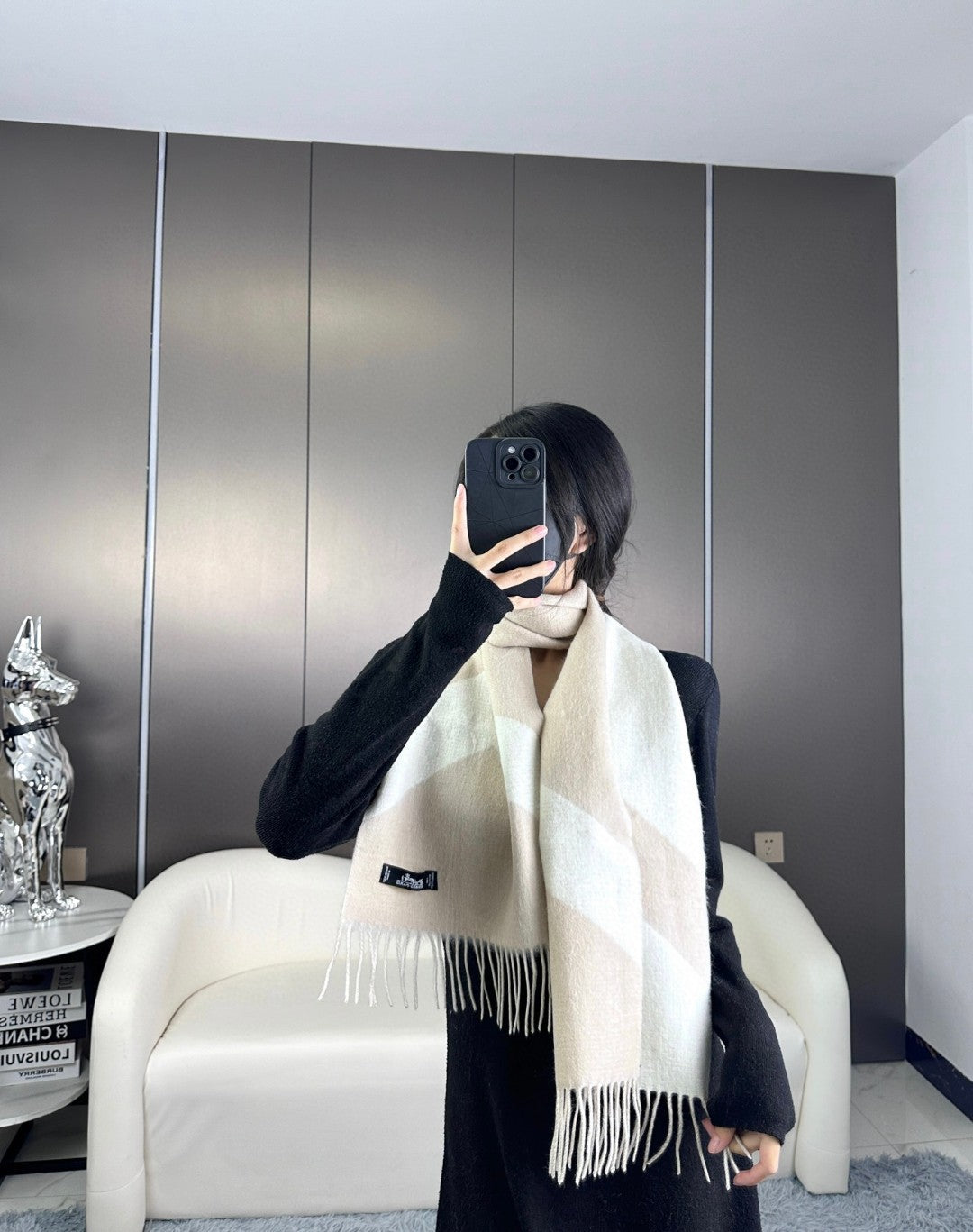 Scarf 190 CM Light Brown Mix White Wool Soft