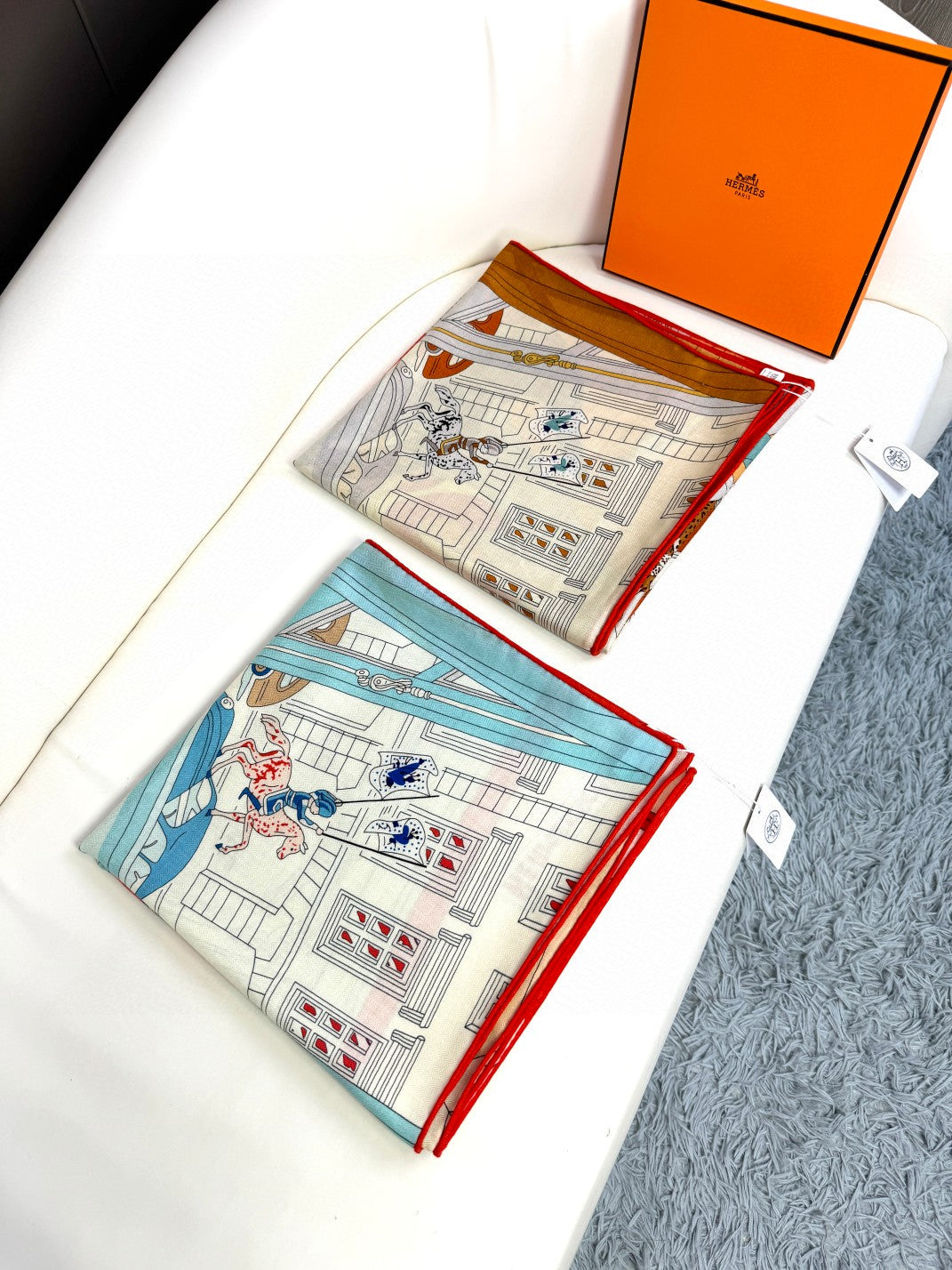 Square scarf 135 CM Yellow Orange Colorful Cashmere And Silk