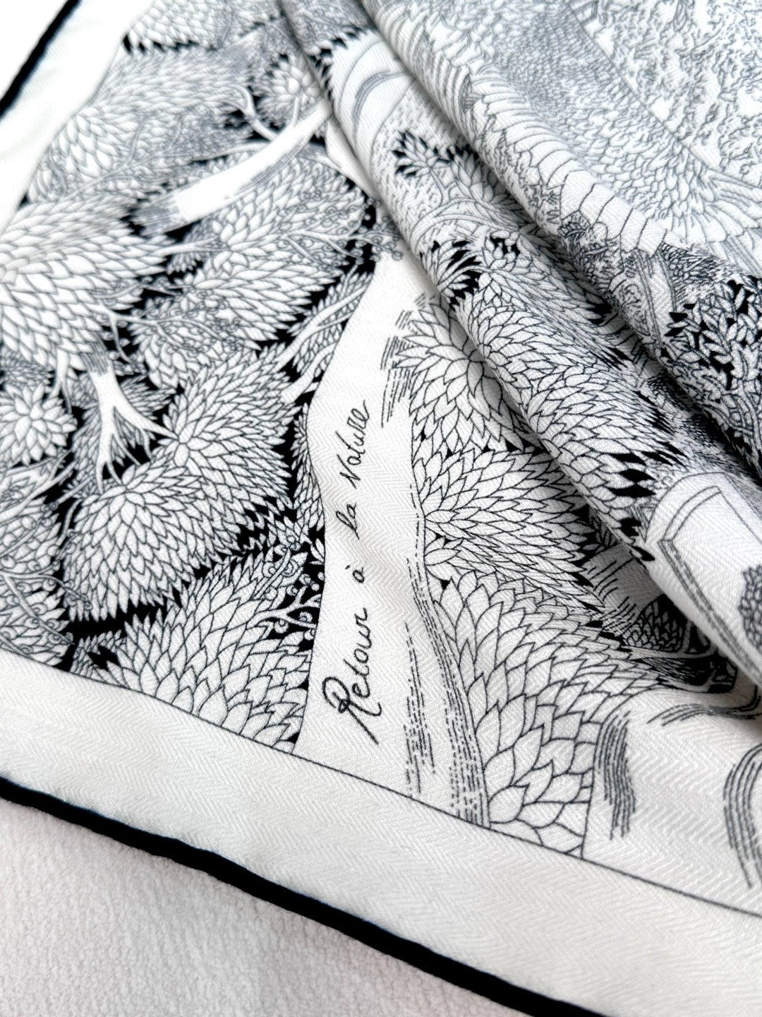 Square Scarf 135CM In Black White Colorful Cashmere And Silk