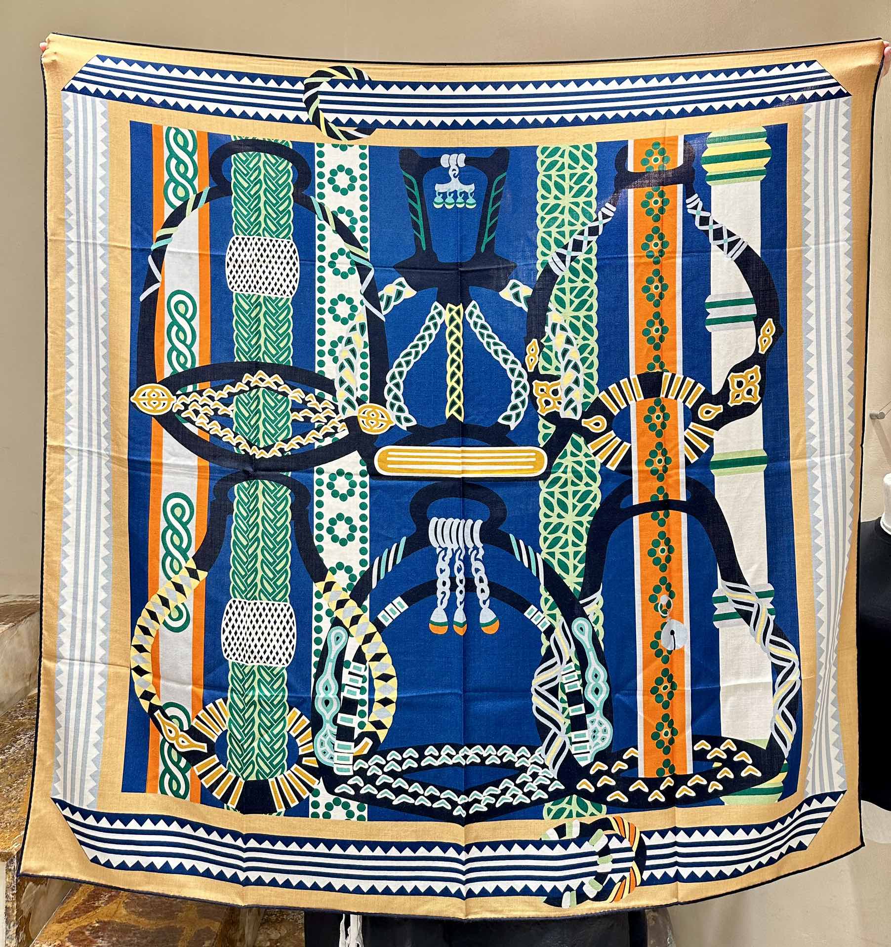 Square Scarf 140 CM Green Mix Blue Colorful Silk