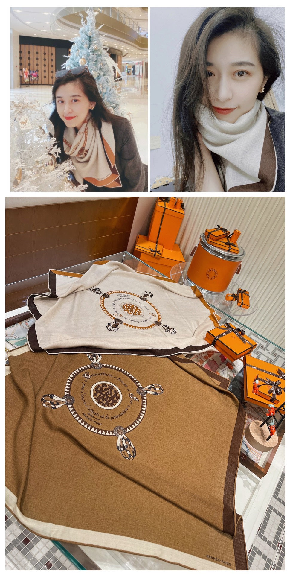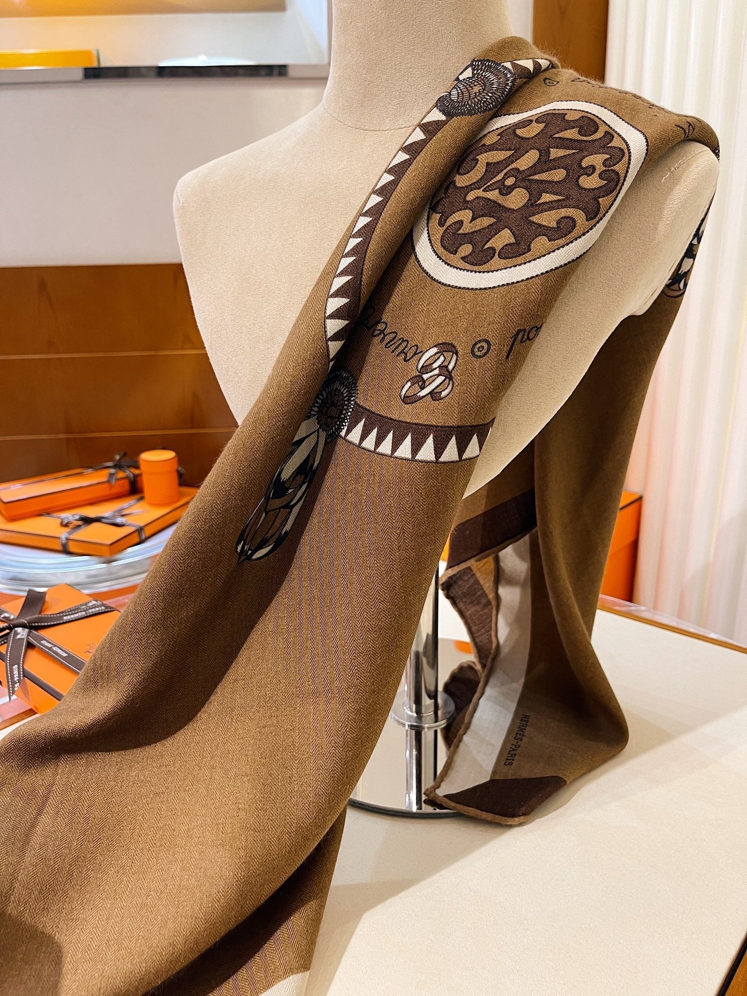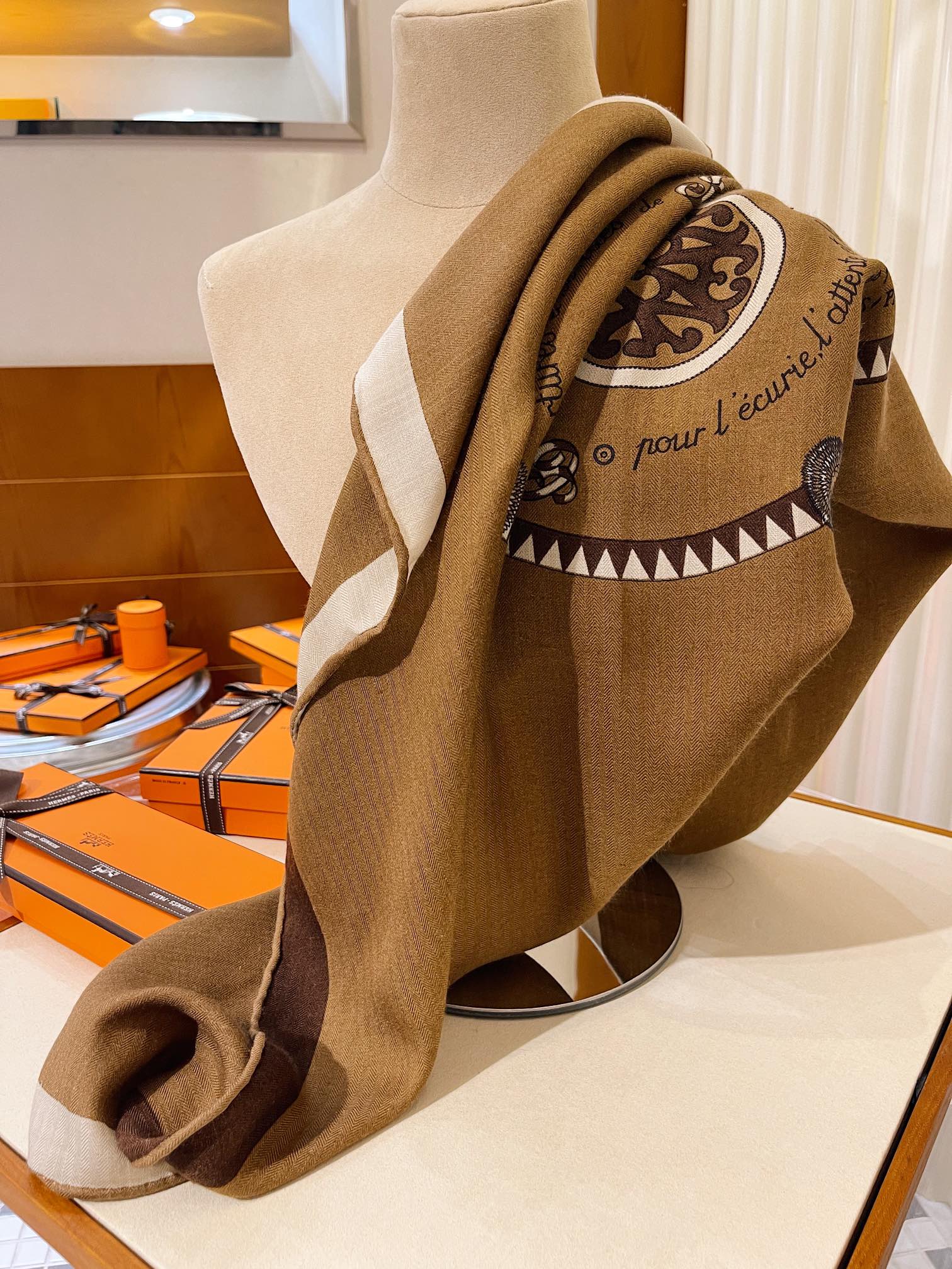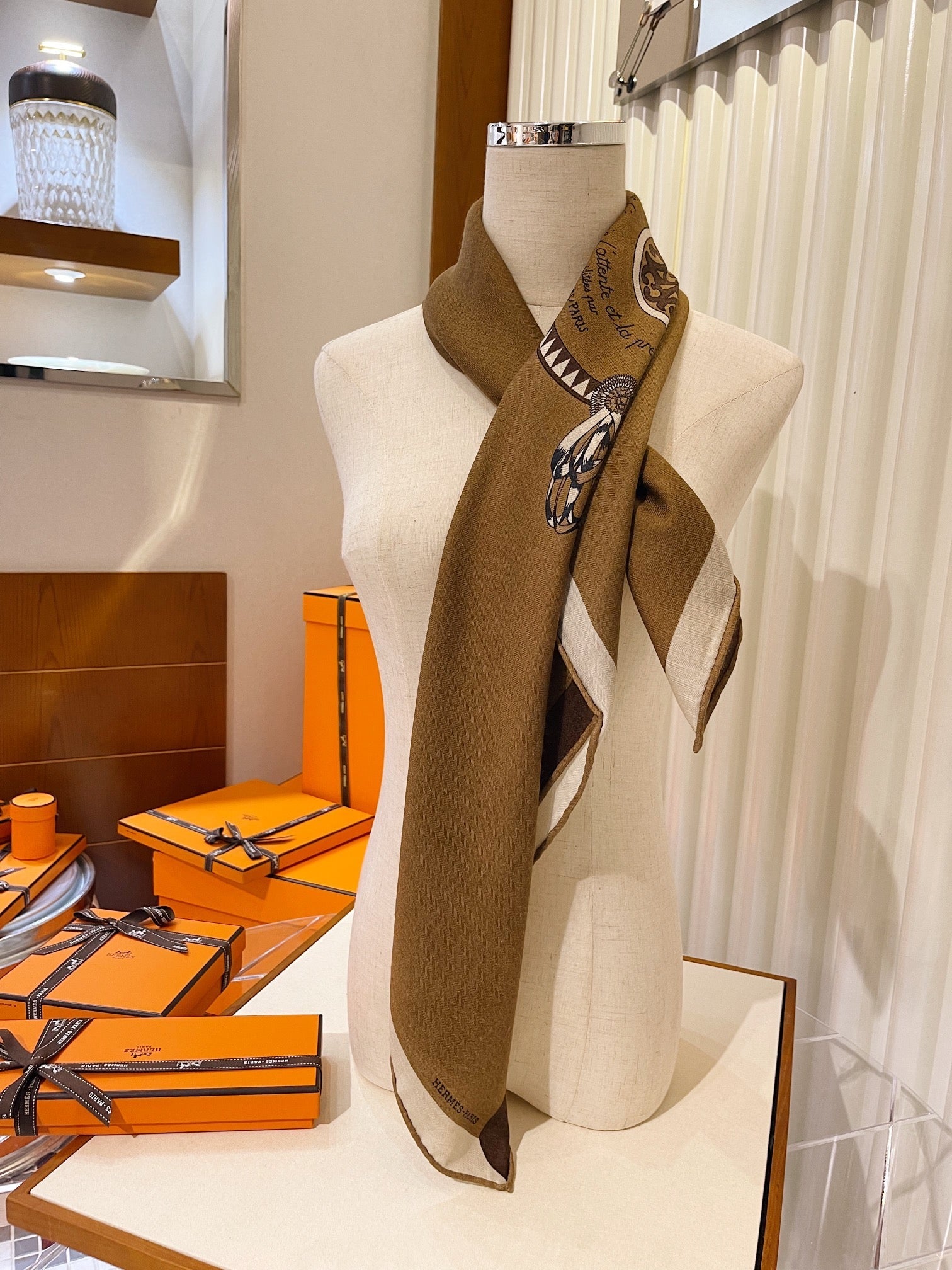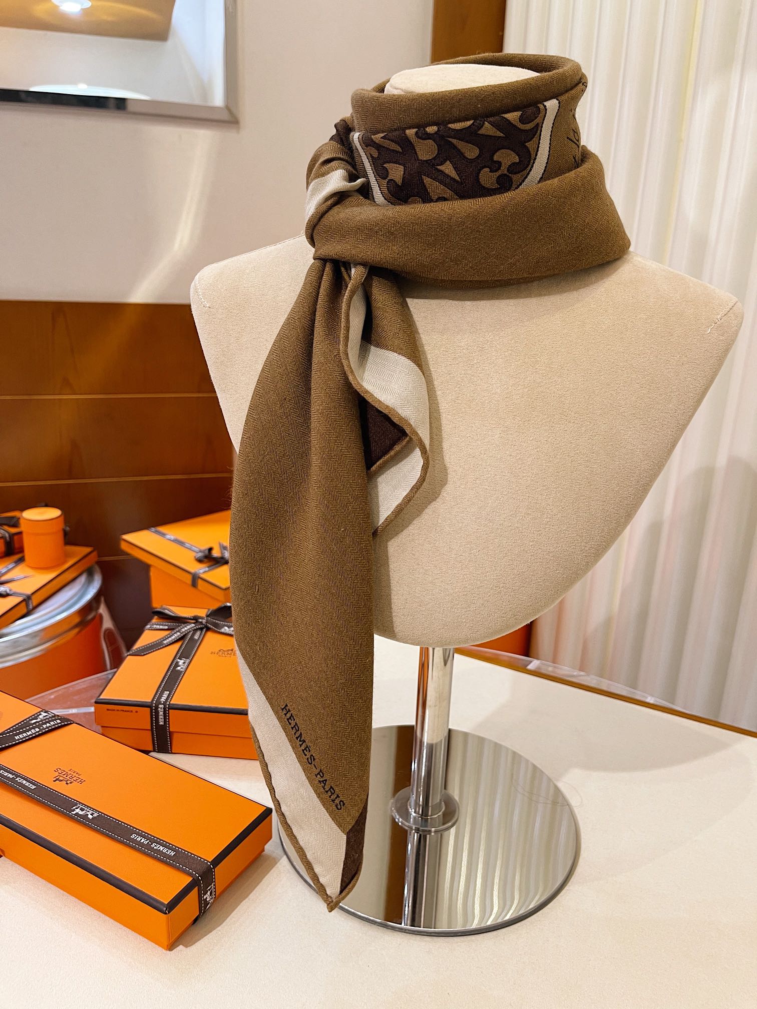 Square Scarf 90 CM In Brown Colorful Cashmere Silk 330350