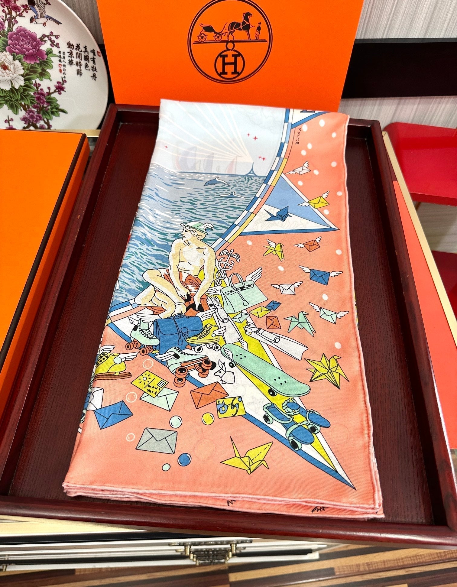 Square Scarf 90 CM Pink Orange Colorful Silk