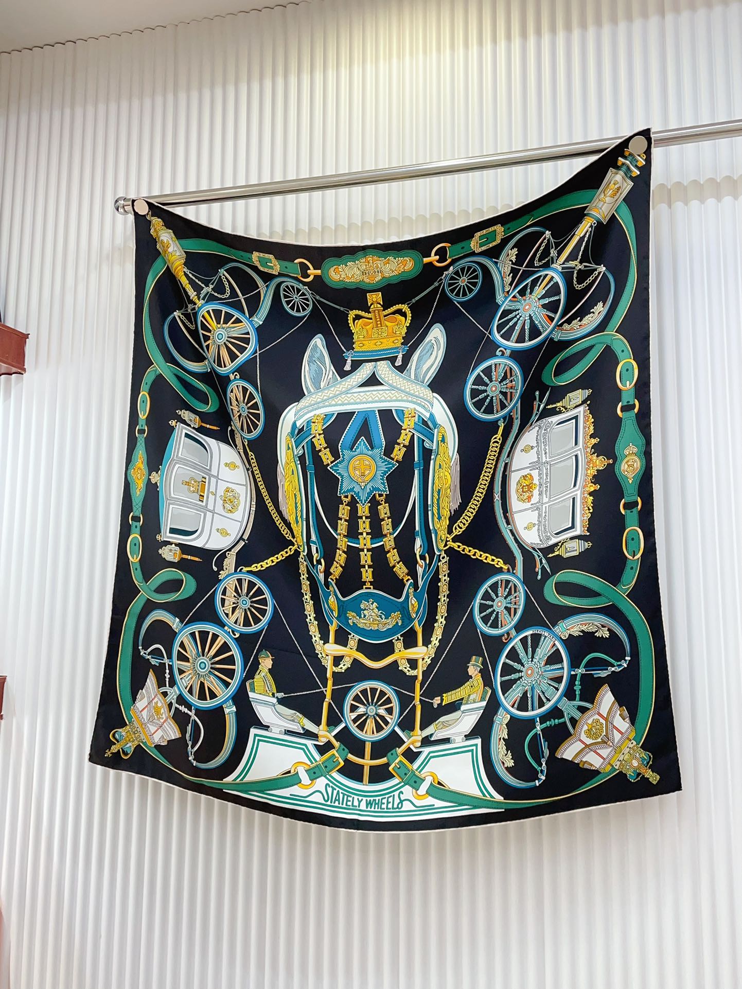 Stately Wheels Scarf 90 CM Black Colorful Silk Twill 312877