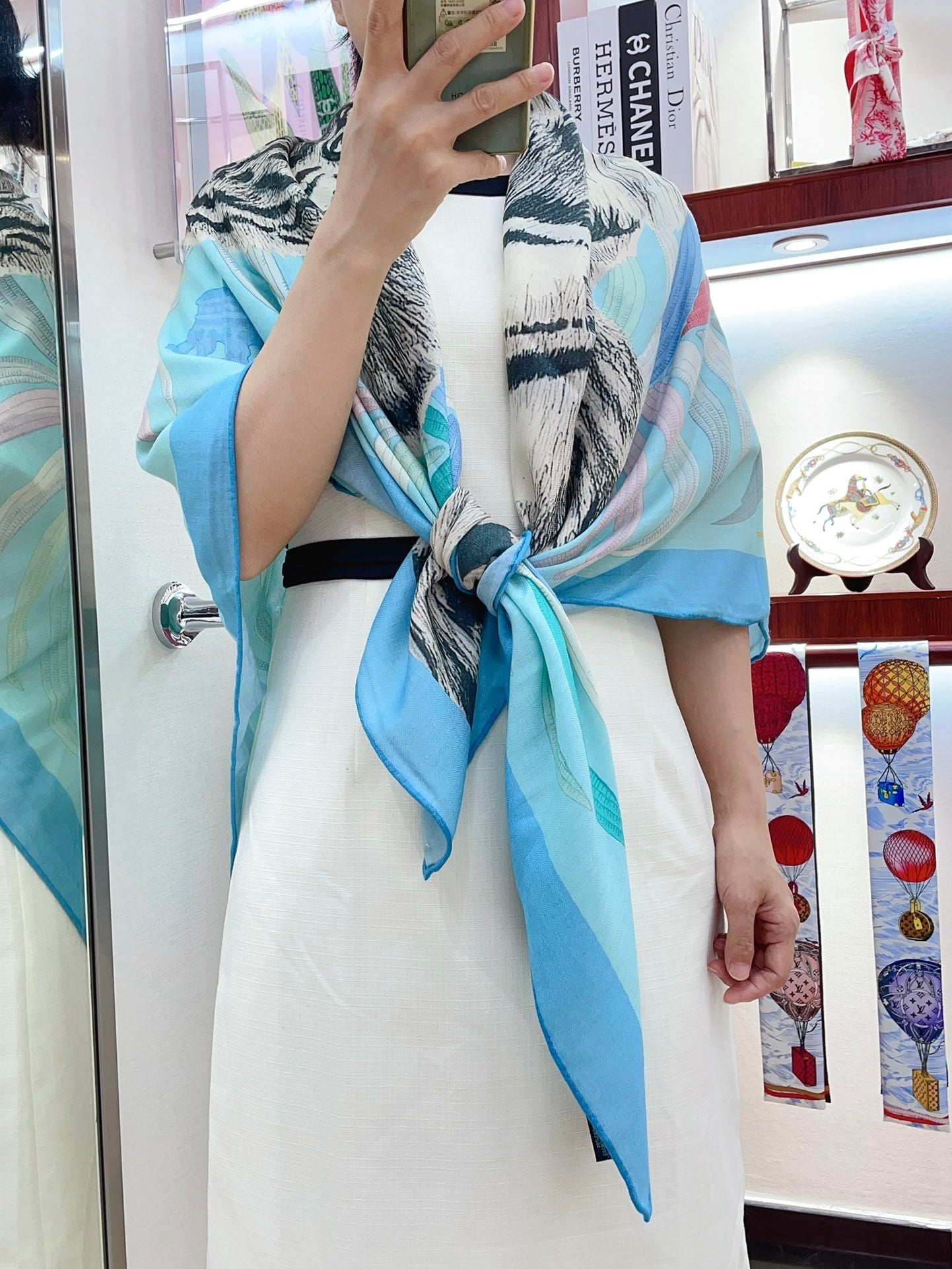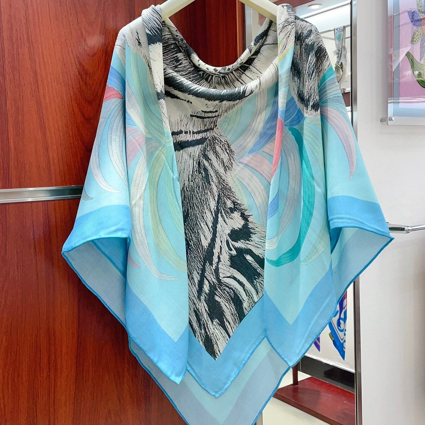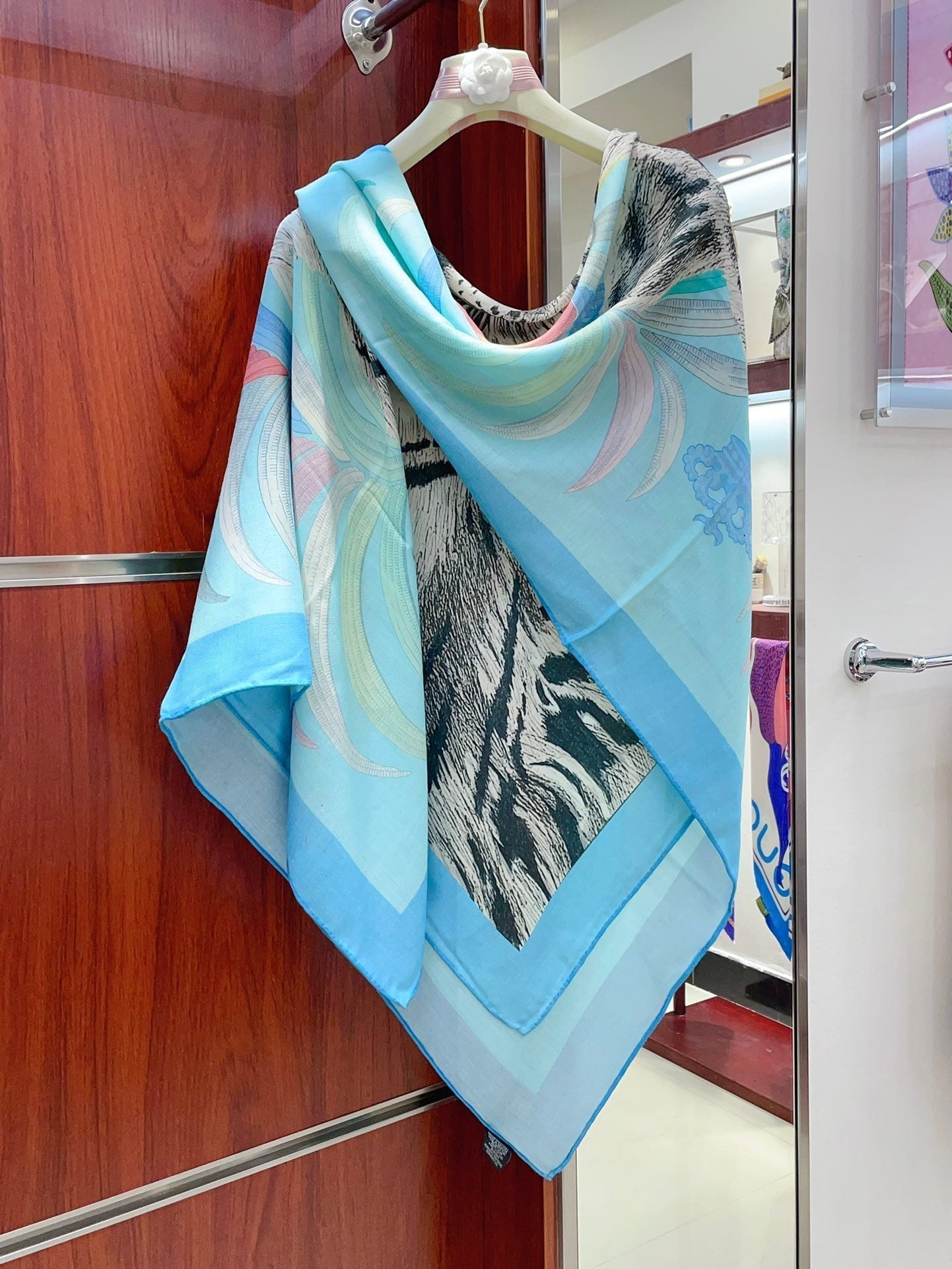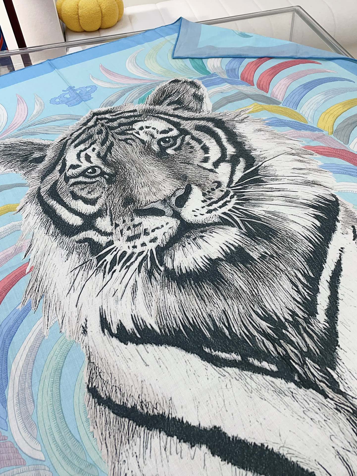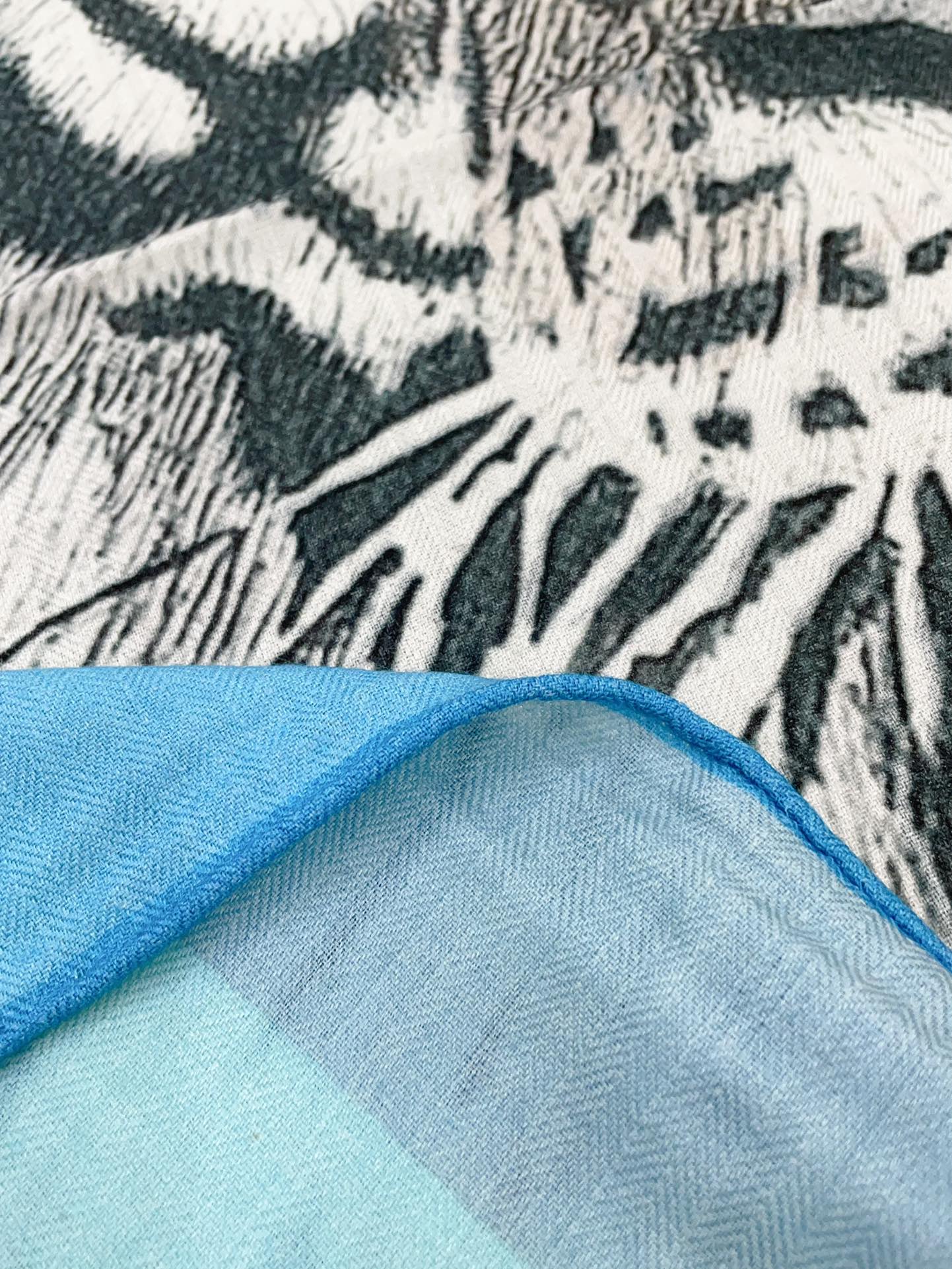 Tigre Royal Double Face Scarf 140 CM In Light Turquoise Colorful Cashmere And Silk 254647
