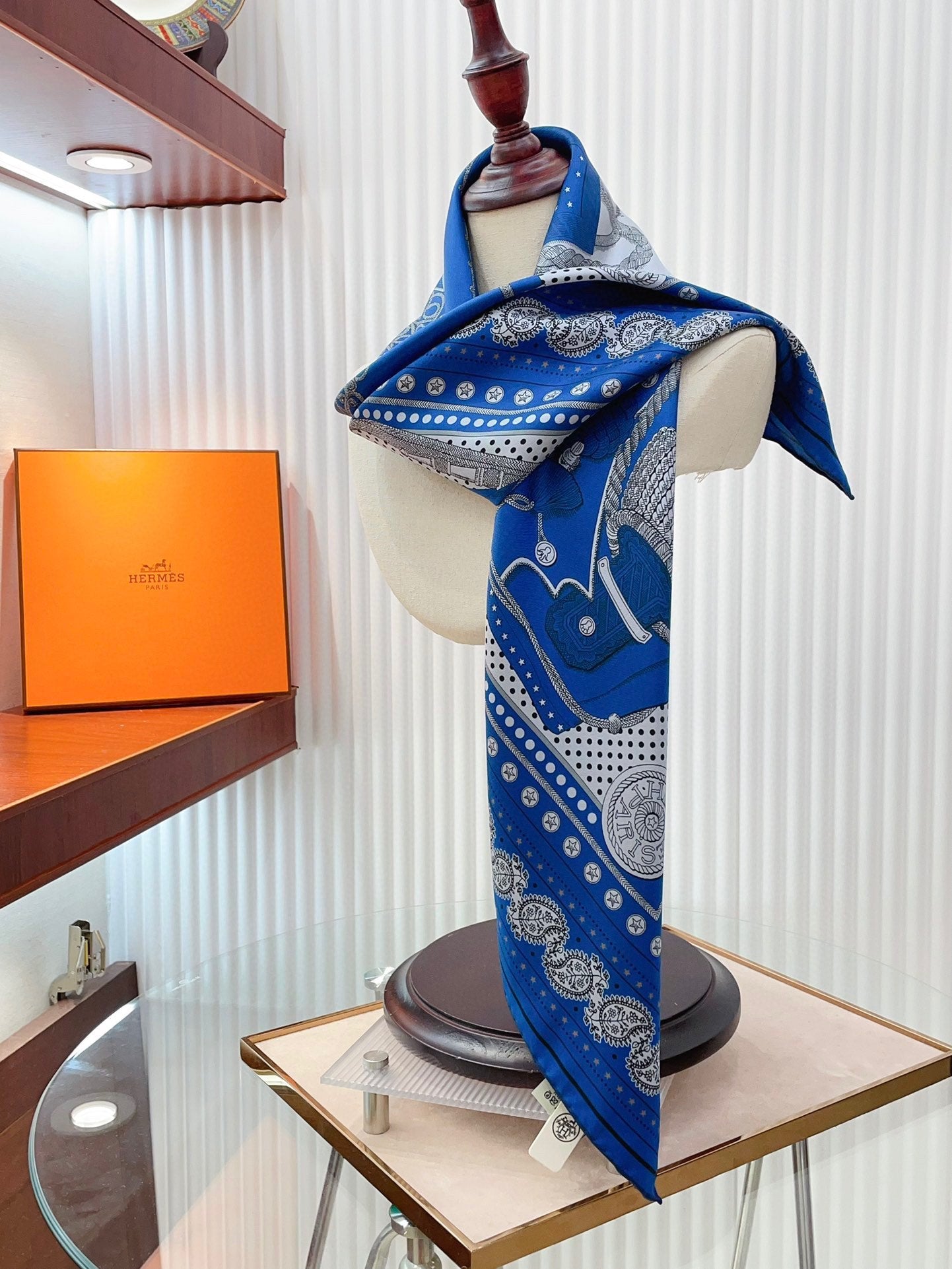 Zouaves Et Dragons Bandana Shawl 90 CM In Blue Colorful Silk Twill 262789