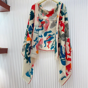 Scarf 180 CM White Colorful Mashmere And Silk 403887