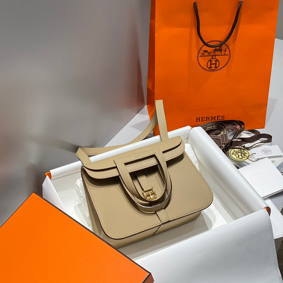 HALZAN 25 HANDLE BAG IN TAN BROWN GRAINED CALFSKIN