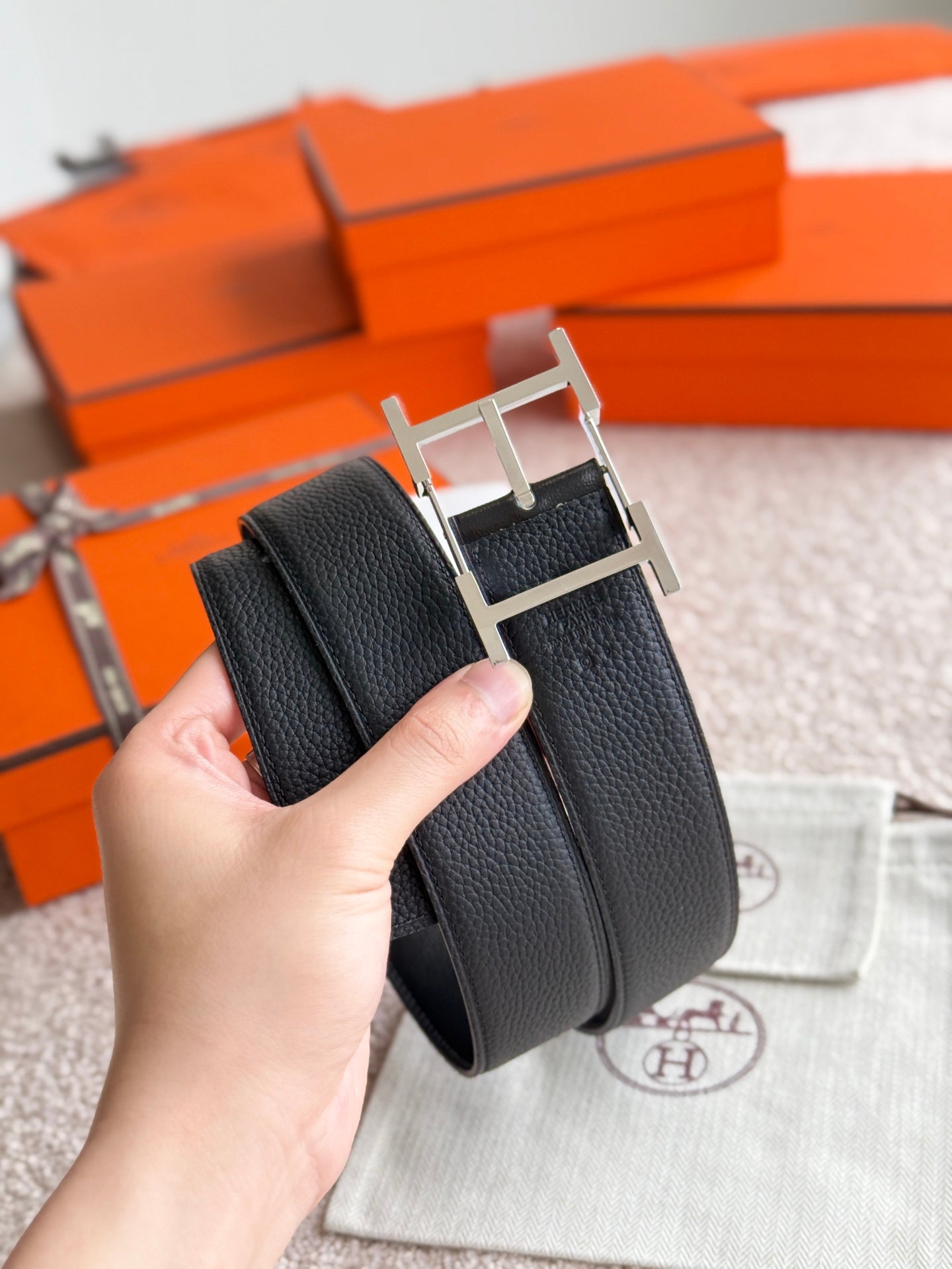 HM Silver Hadrien Reversible 38mm Belt Black Leather 188082
