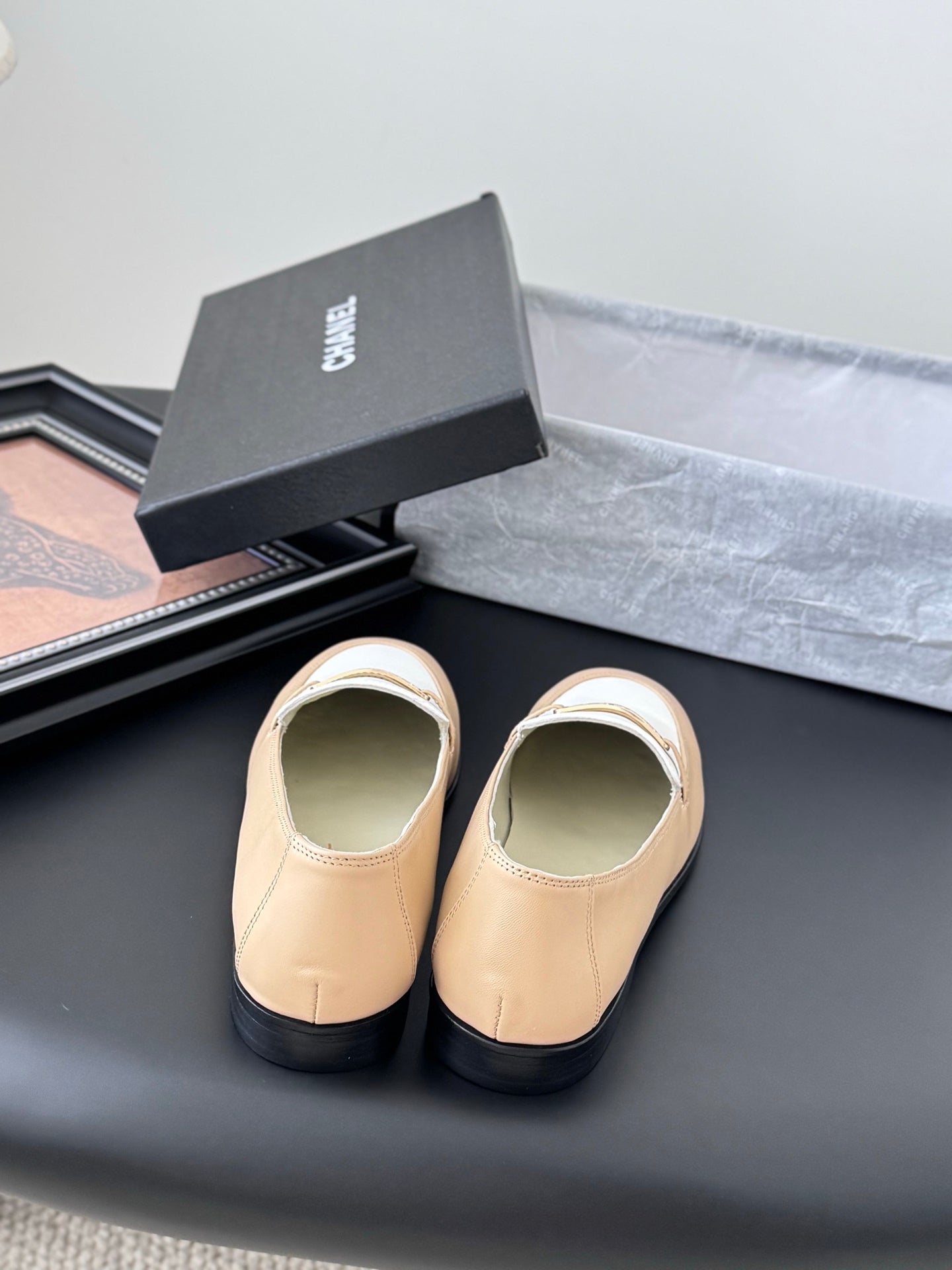 CC 25K Vintage Finition Main Loafers Beige White Calfskin 458644