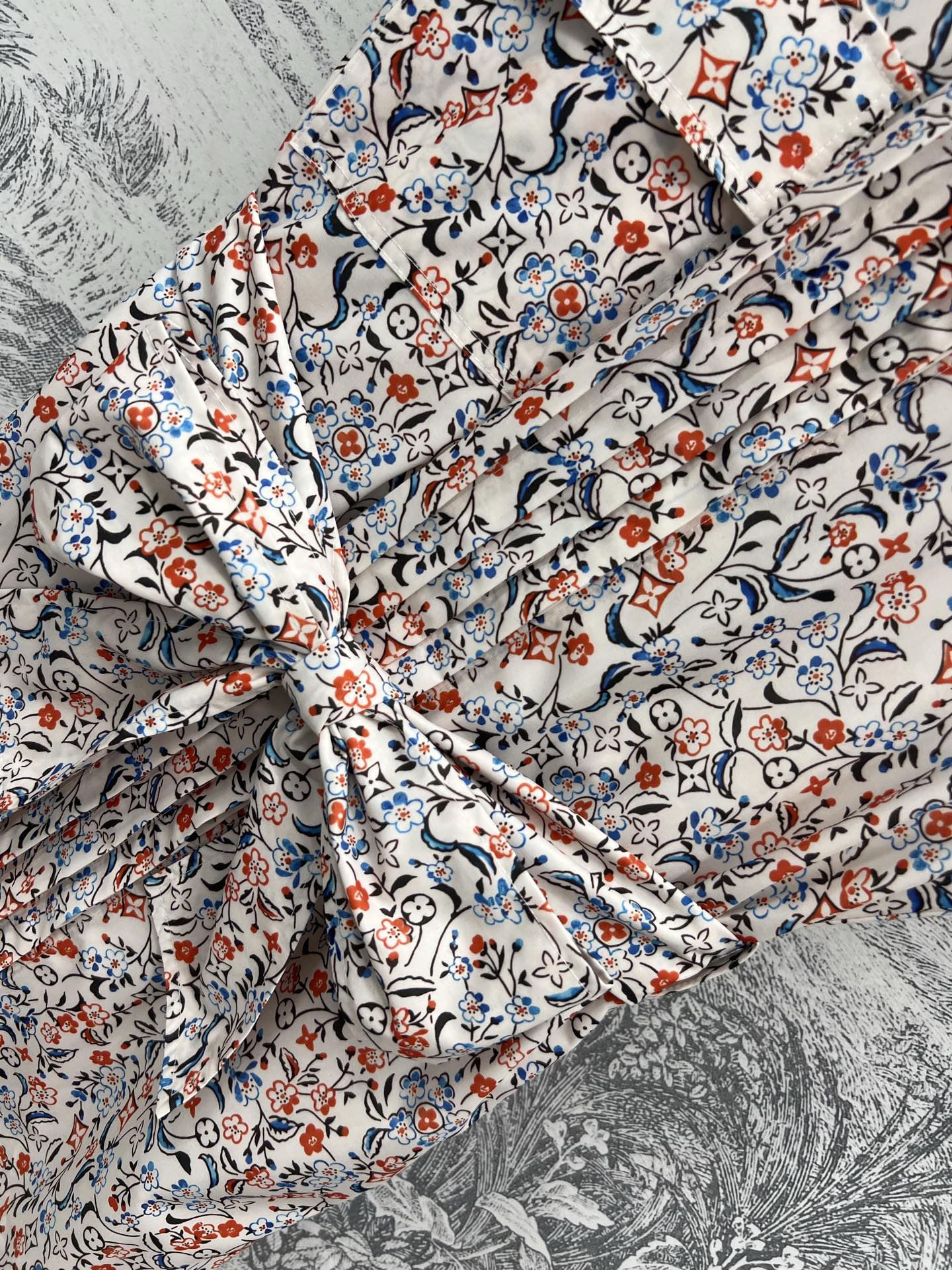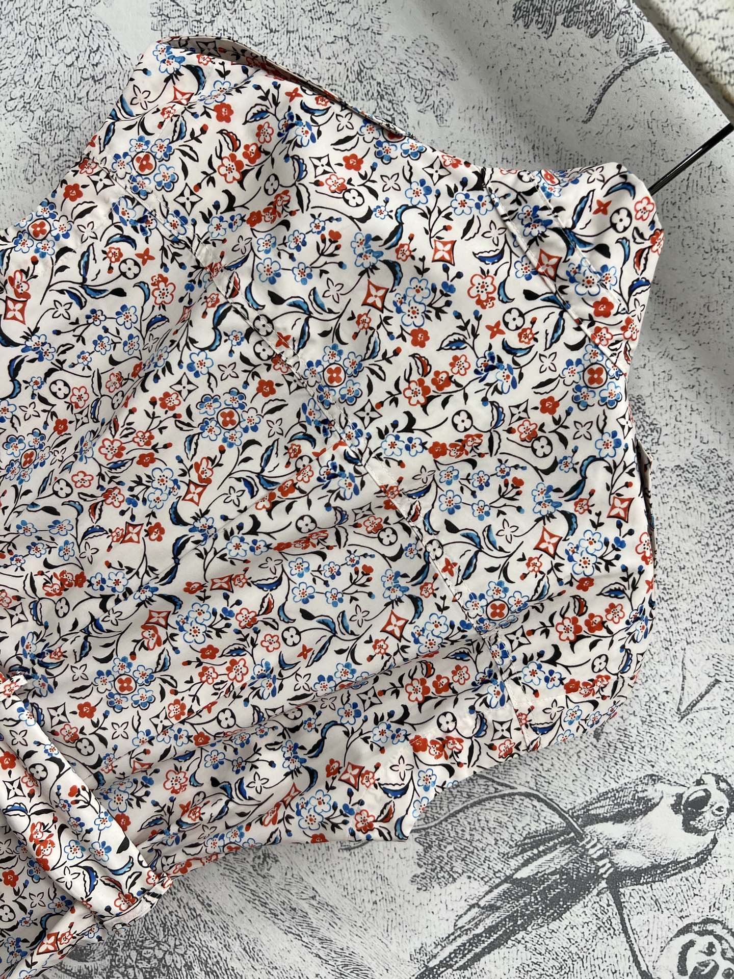 LV 25 Floral Print Stand-up Collar Sleeveless Dress Multicolor Poliester